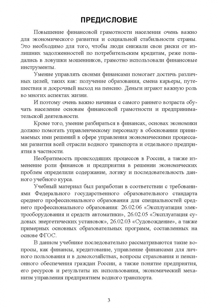 ОписаниеРассмотрены понятия финансов, вопросы кредитования, управления финансами для личного пользования и в домохозяйствах, страхования и пенсионного обеспечения, понятие предприятия, его ресурсов и результаты их использования, экономический механизм управления предприятием водного транспорта.Соответствует современным требованиям ФГОС СПО и профессиональным квалификационным требованиям.Предназначен для студентов колледжей, обучающихся по УГС "Техника и технологии кораблестроения и водного транспорта".Рассмотрены понятия финансов, вопросы кредитования, управления финансами для личного пользования и в домохозяйствах, страхования и пенсионного обеспечения, понятие предприятия, его ресурсов и результаты их использования, экономический механизм управления предприятием водного транспорта.Соответствует современным требованиям ФГОС СПО и профессиональным квалификационным требованиям.Предназначен для студентов колледжей, обучающихся по УГС "Техника и технологии кораблестроения и водного транспорта".