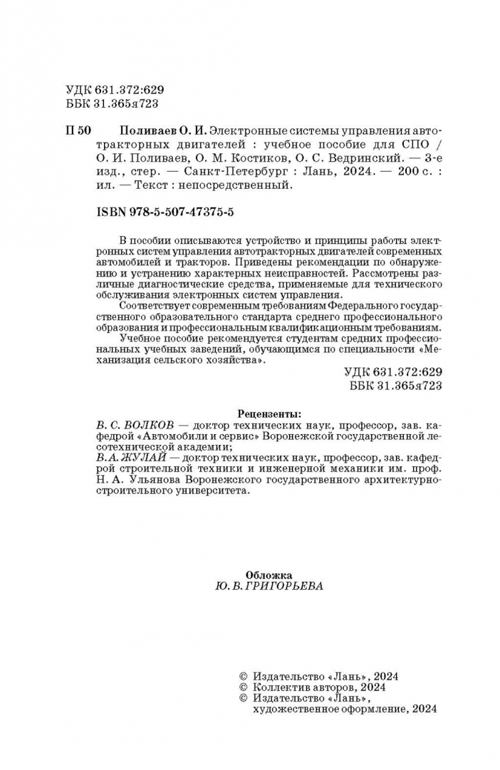 Поливаев, Костиков, Ведринский: Электронные системы управления автотракторных двигателей. Учебное пособие