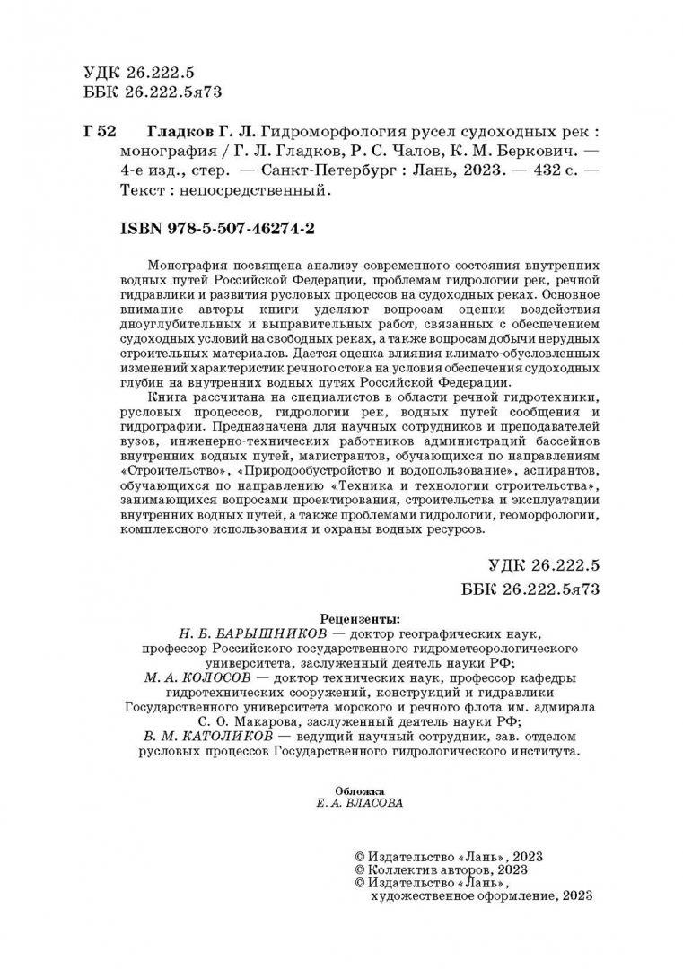 Гладков, Чалов, Беркович: Гидроморфология русел судоходных рек. Монография