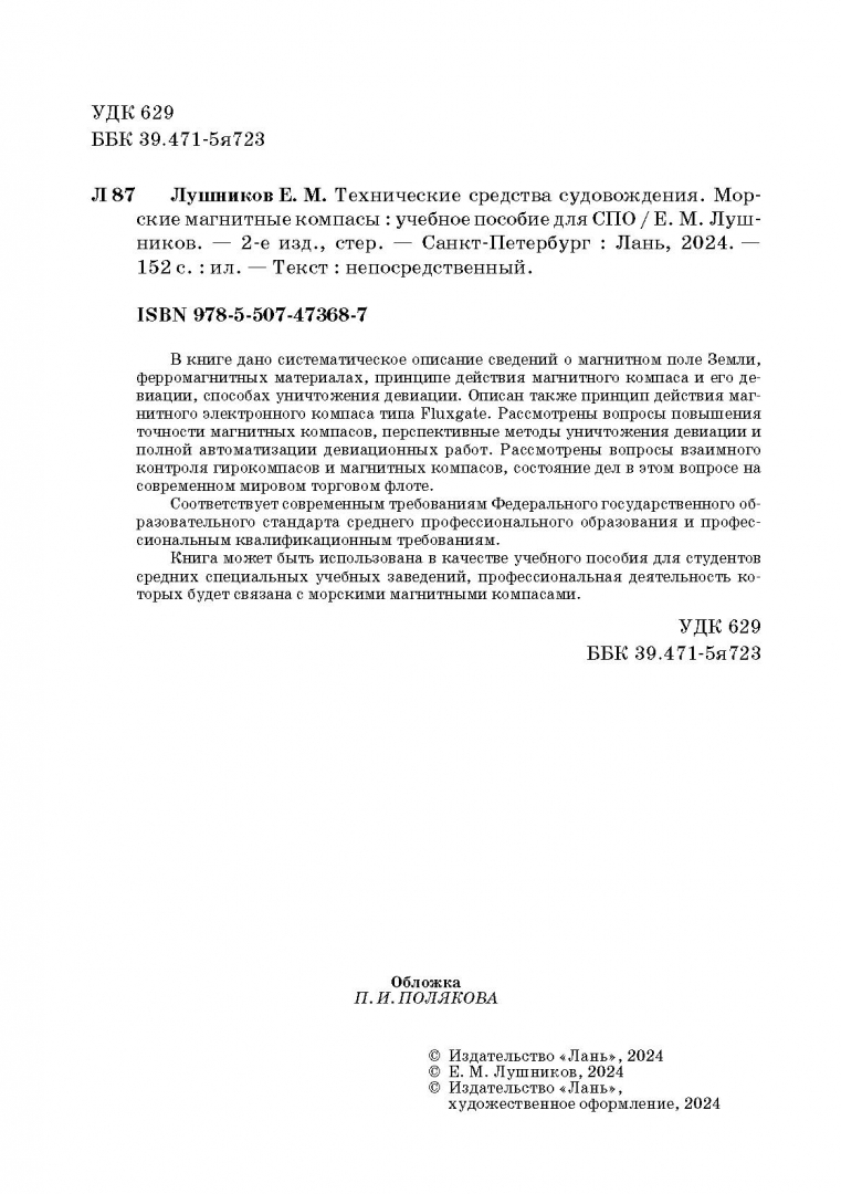 -Евгений Лушников: Технические средства судовождения. Морские магнитные компасы. Учебное пособие для СПОМашиностроение. ПриборостроениеЭнергетикаГорная промышленность. МеталлургияЛегкая промышленностьПолиграфияРемонт бытовых приборовРобототехника и контроллерыАвтоматика. Вычислительная техникаПищевая промышленностьЭлектротехника. ЭлектроникаМетрология, стандартизация и сертификацияСтроительство. Коммунальное хозяйство