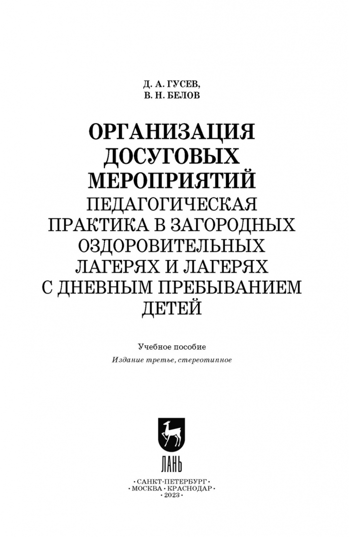 Гусев, Белов: Организация досуговых мероприятий. Педагогическая практика в загородных оздоровительных лагерях
