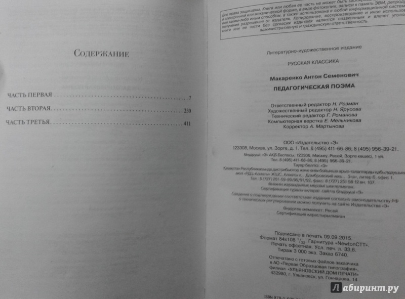 Описание"Педагогическая поэма" - широко известное и наиболее значительное произведение советского педагога и писателя А.С. Макаренко. В ней рассказывается о перевоспитании несовершеннолетних правонарушителей в детской трудовой колонии, создателем и руководителем которой в 20-е годы был автор. Книга адресована широкому кругу читателей. Антон Семенович Макаренко - автор концепции формирования личности в коллективе, взаимосвязь членов которого рассматривалась им как отношения "ответственной зависимости". В отношениях с воспитанниками придерживался принципа: "как можно больше требований к человеку и как можно больше уважения к нему."Педагогическая поэма" - широко известное и наиболее значительное произведение советского педагога и писателя А.С. Макаренко. В ней рассказывается о перевоспитании несовершеннолетних правонарушителей в детской трудовой колонии, создателем и руководителем которой в 20-е годы был автор. Книга адресована широкому кругу читателей. Антон Семенович Макаренко - автор концепции формирования личности в коллективе, взаимосвязь членов которого рассматривалась им как отношения "ответственной зависимости". В отношениях с воспитанниками придерживался принципа: "как можно больше требований к человеку и как можно больше уважения к нему.