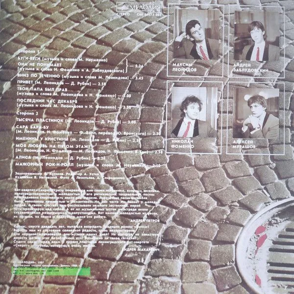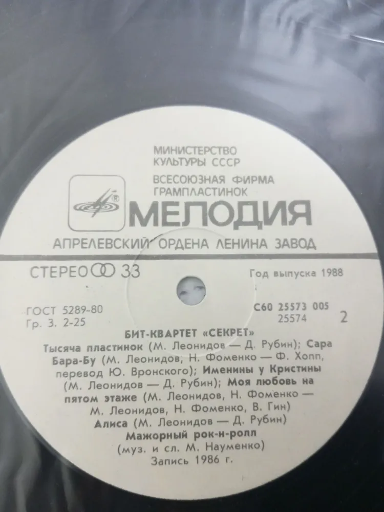 Жанр музыки Российская поп-музыка Страна СССР Год издания 1988 Исполнитель Группа Секрет Издатель МЕЛОДИЯ - Отзывы