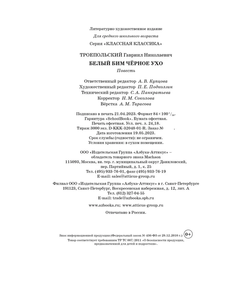 -Троепольский Гавриил Николаевич: Белый Бим Чёрное ухоГоворящие книгиРазвитие ребенка и подготовка к школе (0-6 лет)Активный тренинг Серия: Умные карточкиКнижка-панорамкаПознавательная литература обо всемДетская и подросковая современная литература (до 16 лет)Детская и подросковая познавательная литератураРазвивающая и обучающая литератураПервые книги малыша. Развитие ребенкаПознавательная литература для детейДетский досугКомиксы, Манга, АртбукиДетские книги на ивритеЯ читаю сам!