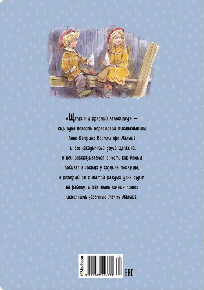 ОписаниеПовести про Малыша и его верного друга Щепкина, которые написала удивительная норвежская писательница Анне-Катрине Вестли, знают так же хорошо, как и её истории про папу, маму, бабушку, восемь детей и грузовик.В повести "Щепкин и красный велосипед" рассказывается о том, что у Малыша появилась заветная мечта и как она осуществилась самым неожиданным образом…Для младшего школьного возраста.