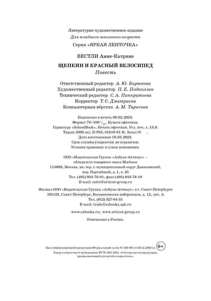 -Вестли Анне-Катрине: Щепкин и красный велосипедГоворящие книгиРазвитие ребенка и подготовка к школе (0-6 лет)Активный тренинг Серия: Умные карточкиКнижка-панорамкаПознавательная литература обо всемДетская и подросковая современная литература (до 16 лет)Детская и подросковая познавательная литератураРазвивающая и обучающая литератураПервые книги малыша. Развитие ребенкаПознавательная литература для детейДетский досугКомиксы, Манга, АртбукиДетские книги на ивритеЯ читаю сам!