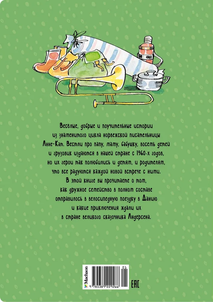 ОписаниеВесёлые, добрые и поучительные истории из знаменитого цикла норвежской писательницы Анне-Кат. Вестли про папу, маму, бабушку, восемь детей и грузовик издаются в нашей стране с 1960-х годов, но их герои так полюбились и детям, и родителям, что все радуются каждой новой встрече с ними.В этой книге вы прочитаете о том, как дружное семейство в полном составе отправилось в велосипедную поездку в Данию и какие приключения ждали их в стране великого сказочника Андерсена.