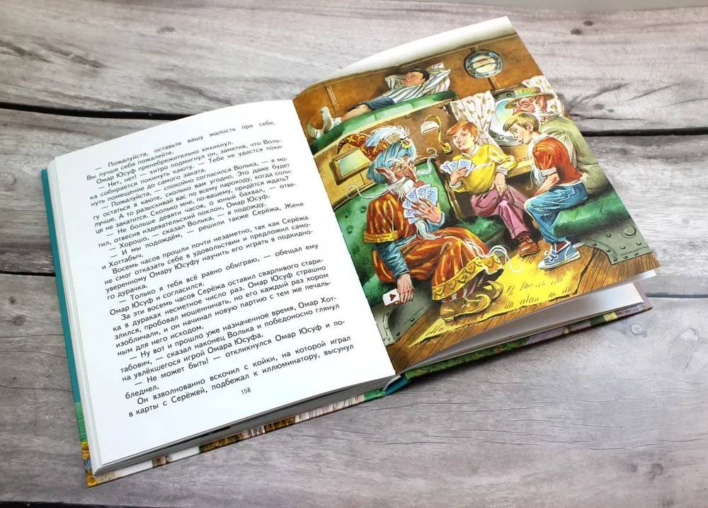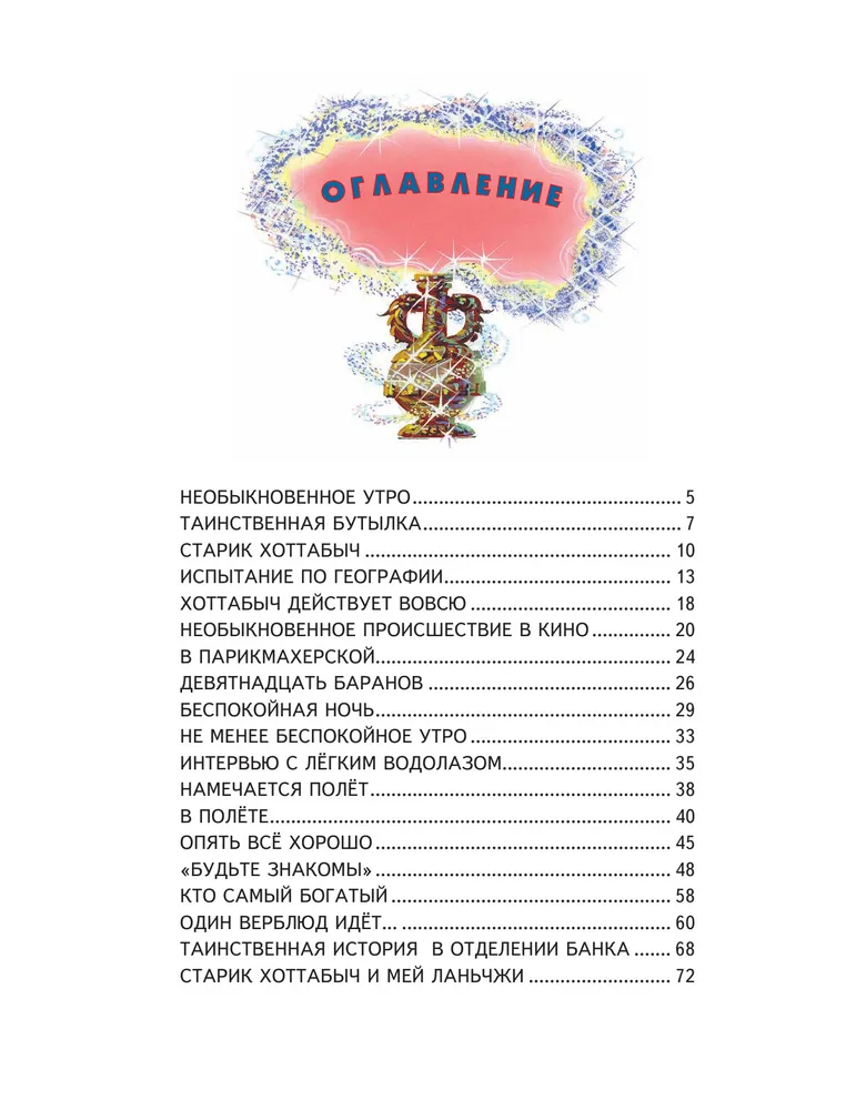 ОписаниеКто из нас не мечтал о чудесном исполнении самых невероятных желаний! Как было бы здорово получать "пятёрки", не открывая учебников, вдоволь есть мороженое, летать на ковре-самолёте. Словом, очень неплохо иметь в друзьях настоящего волшебника. Правда, никто не задумывается, каково будет волшебнику в современном мире…Увлекательнейшая сказка Л. Лагина о невероятных приключениях настоящего арабского джинна Гассана Абдуррахмана ибн Хоттаба (а попросту - Хоттабыча) в индустриальной Москве сразу завоевала любовь многих тысяч читателей. Оказывается, и джинны могут отстать от жизни. А кто бы не отстал, просидев в закупоренном кувшине 3000 лет? Но за это время наука и техника умчались так далеко вперёд, что добрейшему старику приходится очень несладко в новом мире. А все его попытки искренне отблагодарить своего спасителя в соответствии с древнейшим сказочным этикетом приносят больше вреда, чем пользы. Забавные и подробные иллюстрации Владимира Канивца помогают составить полную картину всех происшествий и приключений, свалившихся на голову московского школьника Вольки Костылькова вместе с выпущенным из бутылки джинном. Текст книги "Старик Хоттабыч" приводится в сокращении.Для младшего школьного возраста.
