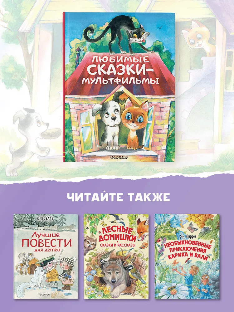 ОписаниеЛюбимые сказки-мультфильмы. Успенский Э.Н., Остер Г.Б., Сутеев В.Г. Любимые истории для детей В книгу «Любимые сказки-мультфильмы» вошли самые известные сказки, по которым были сняты мультфильмы «Хорошо спрятанная котлета», «Зарядка для хвоста», «Дядя Фёдор», «Крокодил Гена и его друзья», «Я на солнышке лежу», «Вовка в Тридевятом царстве» и многие другие. А героев, которые полюбились и стали узнаваемыми, нарисовали талантливые художники А. Савченко, В. Сутеев, И. Кострина и другие. Для дошкольного возраста.