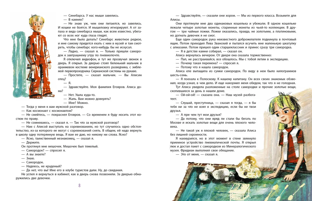ОписаниеВ книгу знаменитого писателя-фантаста Кира Булычева "Девочка с Земли" вошла одна из самых первых повестей об Алисе Селезневой "Путешествие Алисы". Алиса – девочка конца XXI века. Люди избавились от всех болезней, кроме насморка, летают на разные планеты и разгадывают загадки Вселенной. Побеждены почти все людские пороки, но, к сожалению, человечество несовершенно, поэтому остались космические пираты. Алисе и экипажу космического корабля "Пегас" придется с ними столкнуться. Кто выйдет из этой встречи победителем?В 1981 году по книге был снят легендарный мультфильм "Тайна Третьей планеты".Рисунки Н. Бугославской.Для среднего школьного возраста.