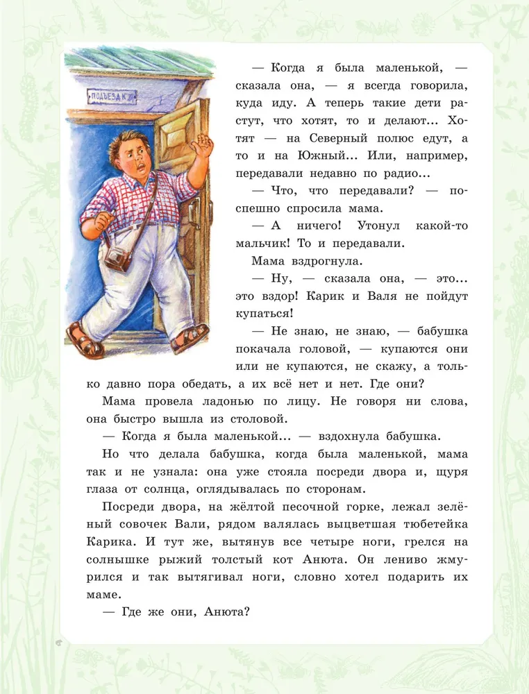 ОписаниеОднажды Самуил Маршак поручил Яну Ларри (1900—1977) написать книгу о науке для детей в увлекательной форме. Такой книгой суждено было стать повести "Необыкновенные приключения Карика и Вали". Впервые эта книга увидела свет в 1937 году и имела колоссальный успех. Книгу переиздавали несколько десятков раз, по ней был снят фильм (1987) и мультфильм (2005). Эта удивительная история про брата и сестру, Карика и Валю, которые, выпив волшебный эликсир, уменьшились до размеров песчинки и попали в мир растений и насекомых. Здесь царят свои законы, и ребятам приходится непросто, потому что на каждом шагу их подстерегает опасность. Но на помощь им спешит мудрый профессор — он-то сразу догадался, что случилось с ребятами.Для среднего школьного возраста.