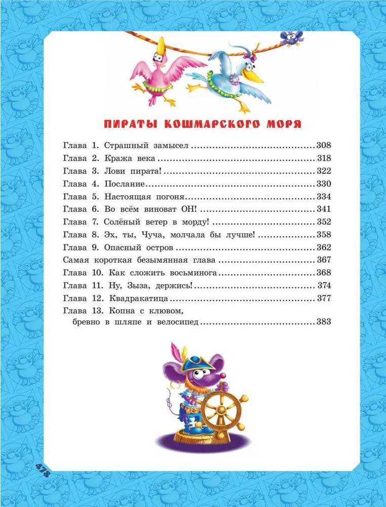 ОписаниеВ сборник «Большая книга кота да Винчи» вошли три первые истории про гениального детектива кота да Винчи: «Улыбка Анаконды», «Ограбление банки» и «Пираты Кошмарского моря».Жизнь в Зверином городе полна странных событий и загадочных происшествий. Особенно когда на горизонте появляется маленький фиолетовый злодей, мышище по имени Зыза. Он строит коварные планы и жаждет славы и богатства!Из Кукушкинского музея исчезает знаменитая картина-загадка «Улыбка Анаконды», в лапы зверей попадает карта таинственных сокровищ, а на берег высаживается экипаж пиратского судна «Бегущий по граблям»!..Кто может поймать преступника и спасти жителей города? Конечно — суперсыщик, фантазёр и просто гениальный кот да Винчи!Большая книга приключений Кота да Винчи, любимого героя миллиона детей!Катя Матюшкина — одна из самых популярных детских писательниц в России. Её весёлые и захватывающие книги дети читают, не отрываясь — ведь она отлично понимает детское чувство юмора и умеет удерживать внимание даже самых активных ребят.В это большое подарочное издание вошли сразу три истории про гениального детектива кота да Винчи: «Улыбка Анаконды», «Ограбление банки» и «Пираты Кошмарского моря». Вместе с пушистым сыщиком ребята отправятся на поиски сокровищ, выведут на чистую воду злодеев и просто отлично повеселятся!Истории о Коте да Винчи идеальны для первого самостоятельного чтения — ведь оторваться от приключений этого выдумщика и фантазёра просто невозможно!