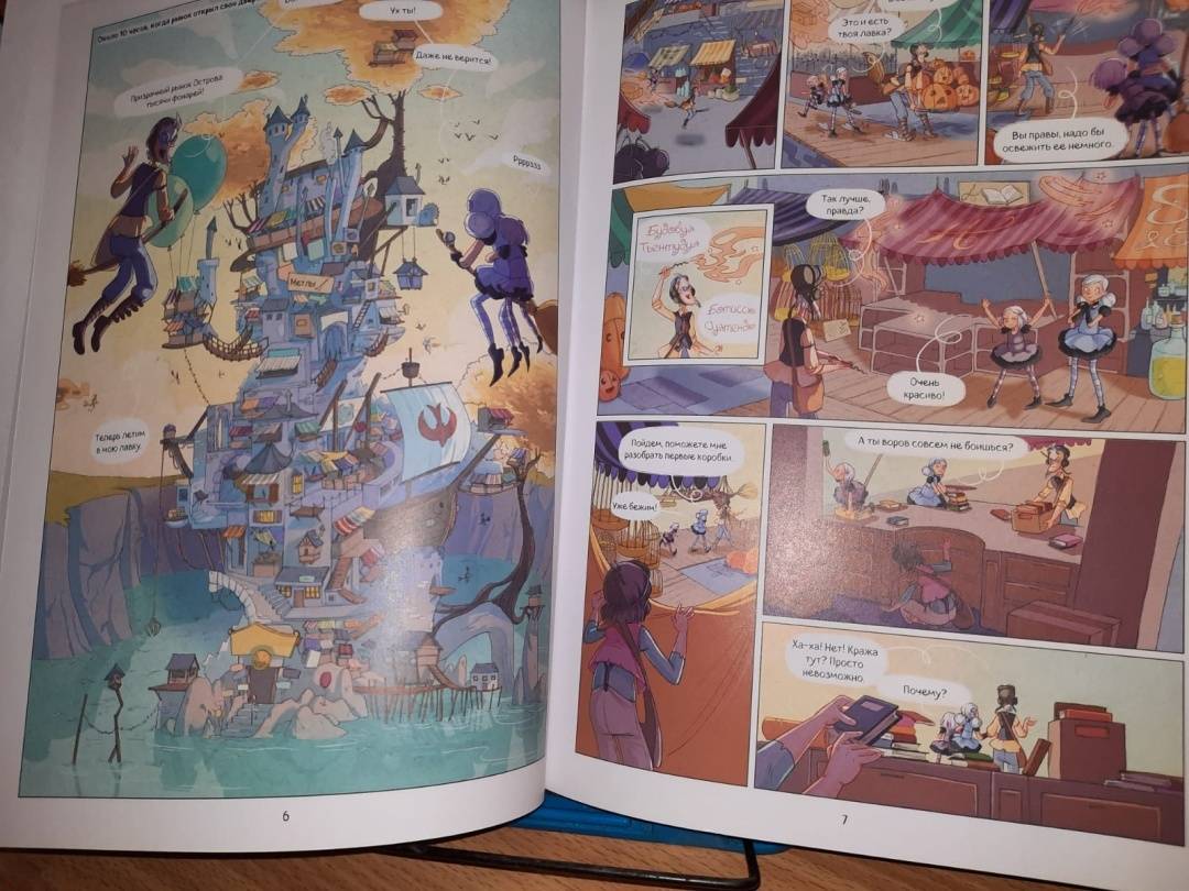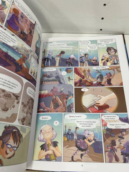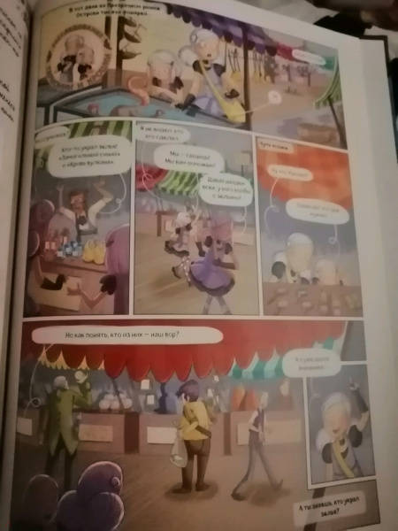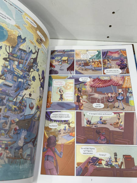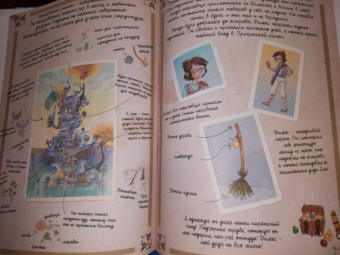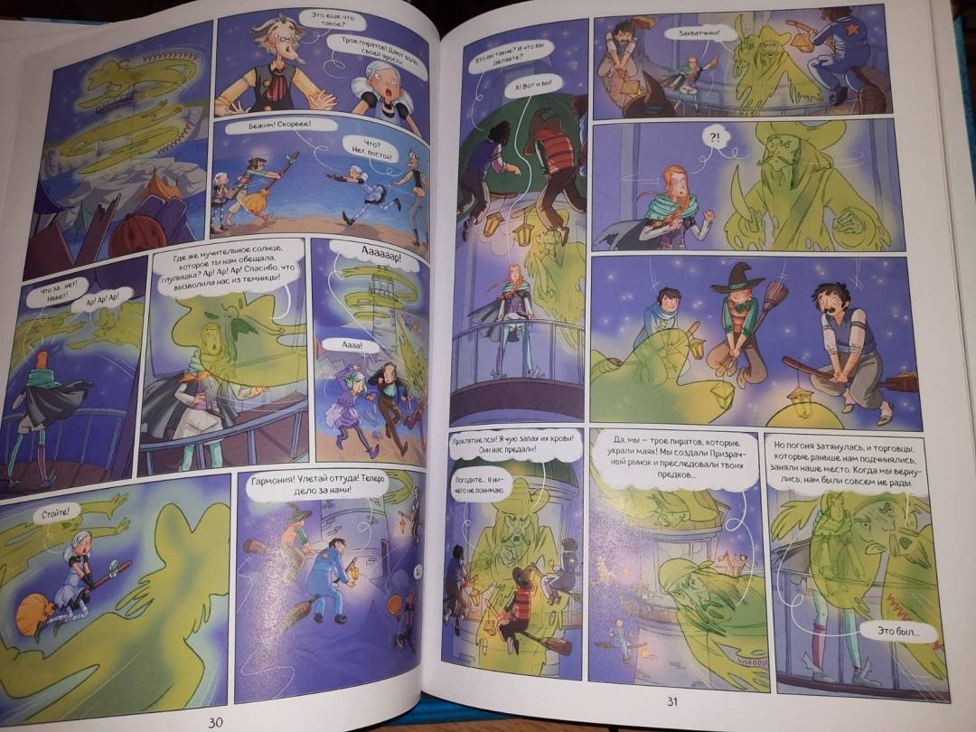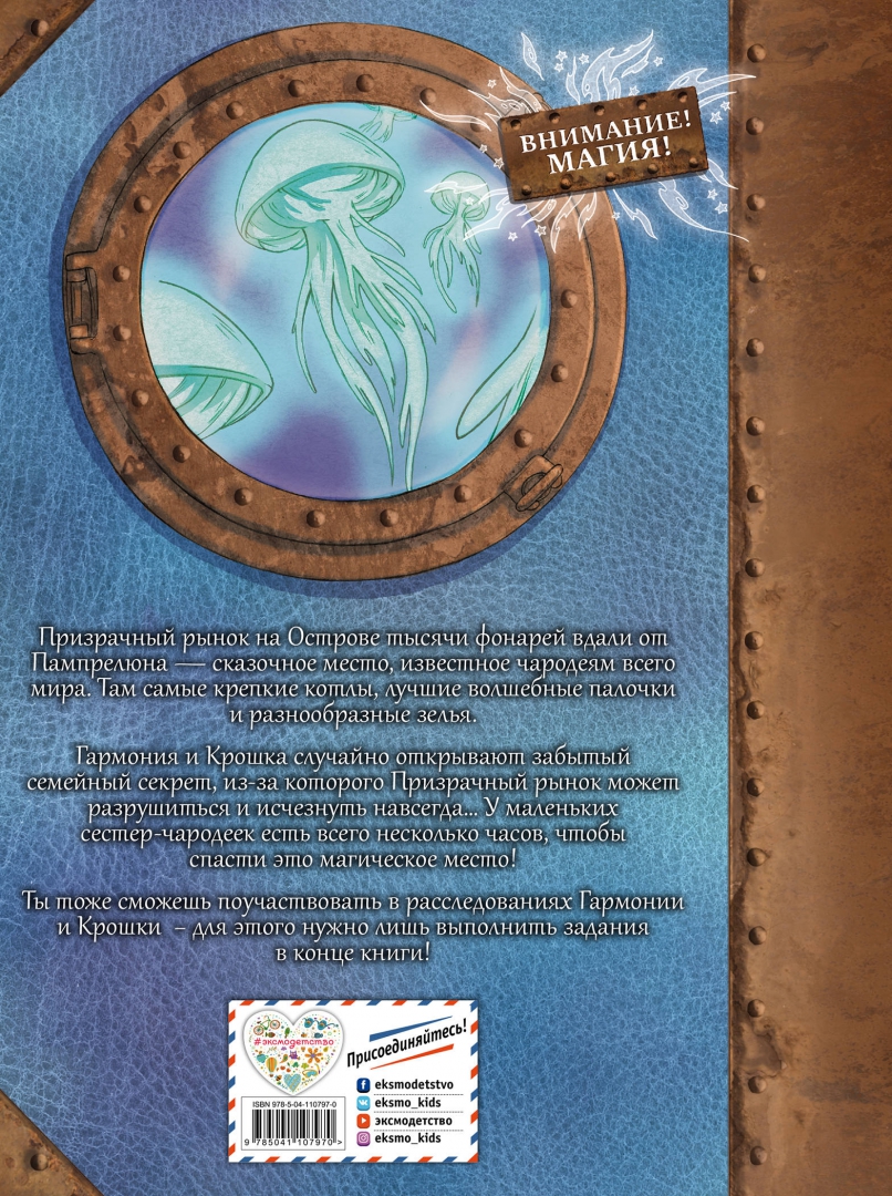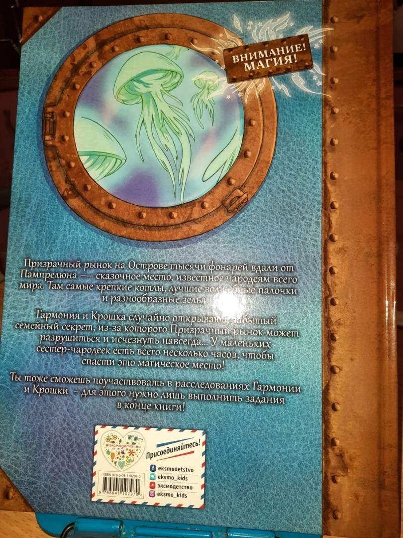 ОписаниеНовая серия комиксов от Жориса Шамблена - автора знаменитых "Дневников Вишенки".Призрачный рынок на Острове тысячи фонарей вдали от Пампрелюна — сказочное место, известное чародеям всего мира. Там самые крепкие котлы, лучшие волшебные палочки и разнообразные зелья.Гармония и Крошка случайно открывают забытый семейный секрет, из-за которого Призрачный рынок может разрушиться и исчезнуть навсегда… У маленьких сестер-чародеек есть всего несколько часов, чтобы спасти это магическое место! Ты тоже сможешь поучаствовать в расследованиях Гармонии и Крошки - для этого нужно лишь выполнить задания в конце книги!Новая серия комиксов от Жориса Шамблена - автора знаменитых "Дневников Вишенки".Призрачный рынок на Острове тысячи фонарей вдали от Пампрелюна — сказочное место, известное чародеям всего мира. Там самые крепкие котлы, лучшие волшебные палочки и разнообразные зелья.Гармония и Крошка случайно открывают забытый семейный секрет, из-за которого Призрачный рынок может разрушиться и исчезнуть навсегда… У маленьких сестер-чародеек есть всего несколько часов, чтобы спасти это магическое место! Ты тоже сможешь поучаствовать в расследованиях Гармонии и Крошки - для этого нужно лишь выполнить задания в конце книги!