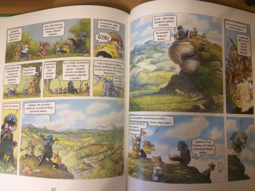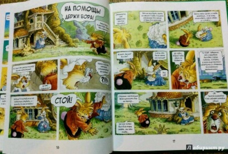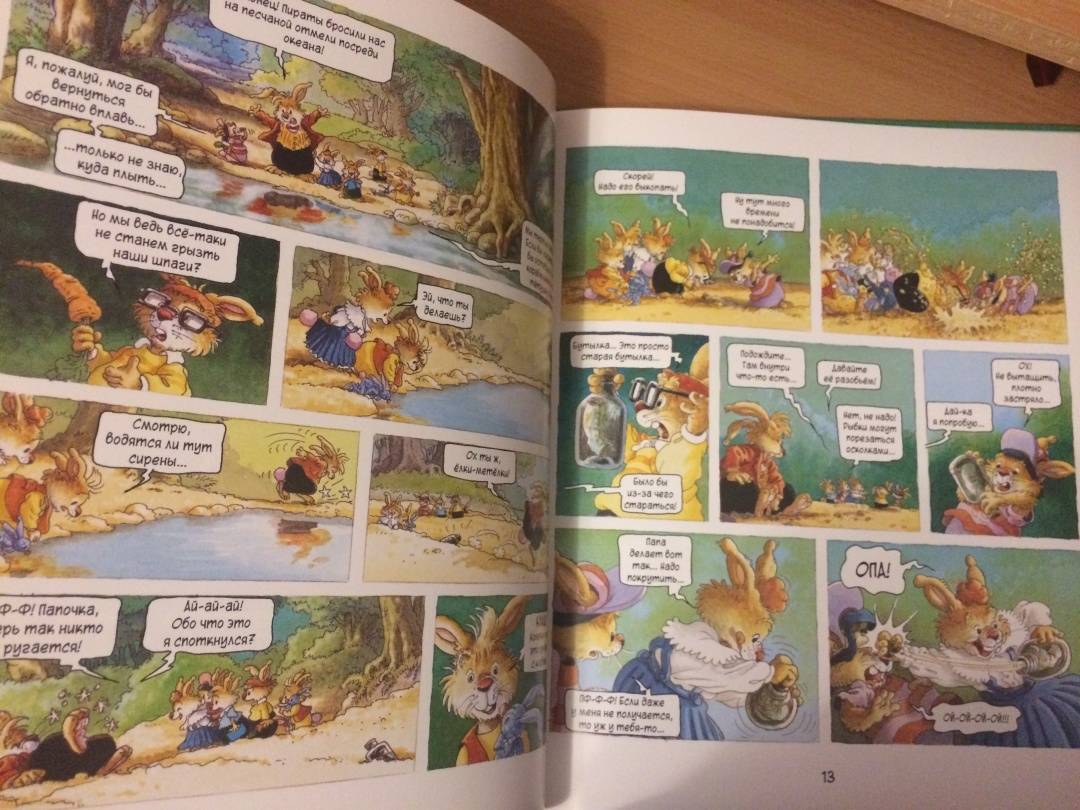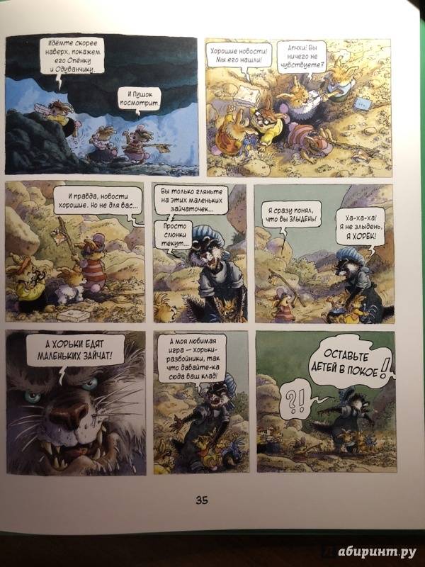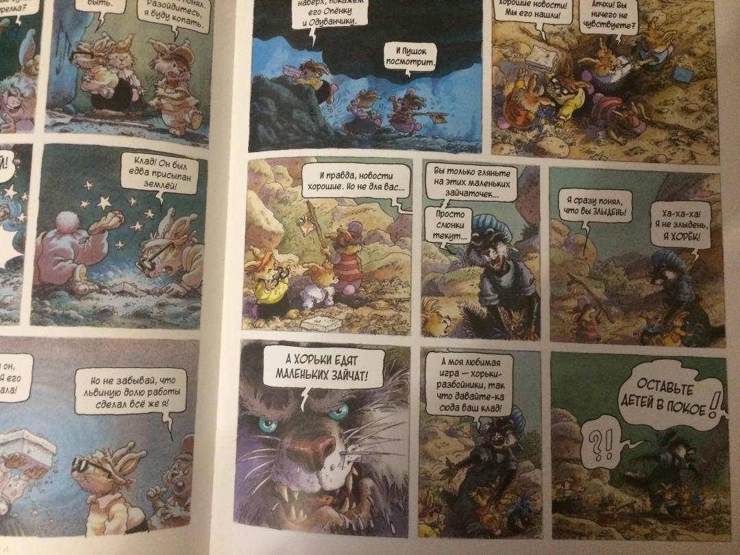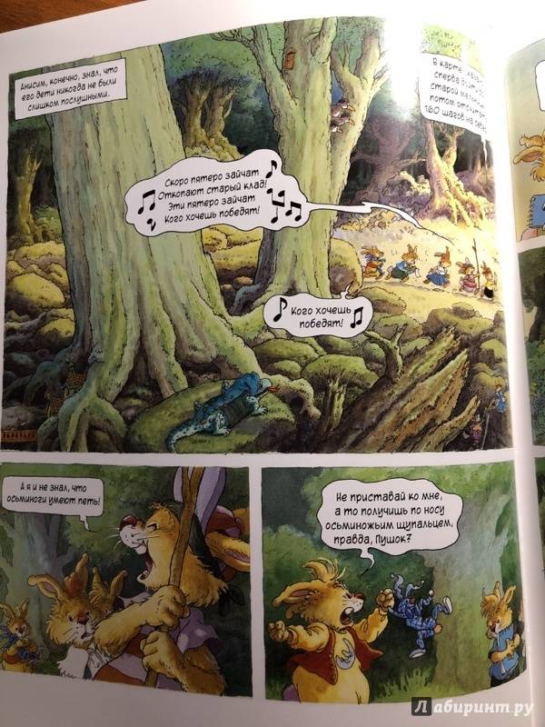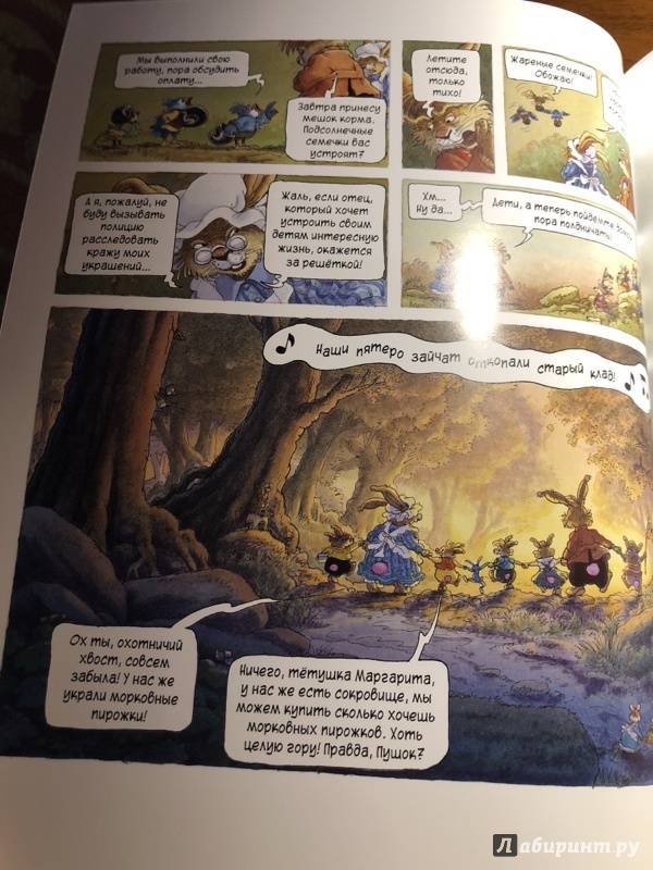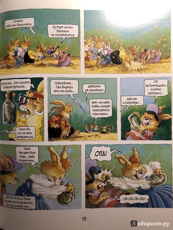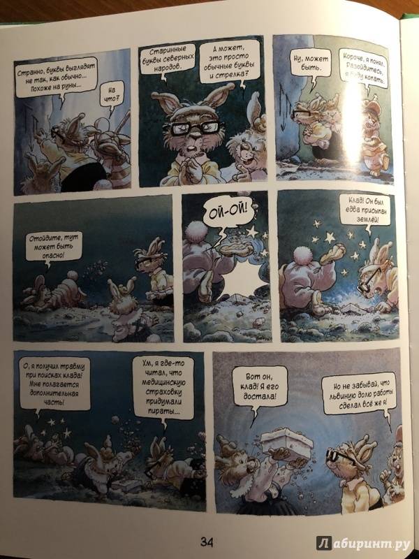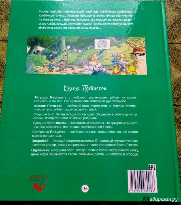 ОписаниеПервая книга о семейке кроликов, вышедшая в 1987 году, сразу же обрела успех и получила несколько литературных премий. Сейчас кролики французского художника Лоика Жуанниго известны всему миру: истории переведены на 28 языков, по ним сняли 52 эпизода мультсериала. С 2014 года иллюстратор обратился к новому жанру - так появились комиксы, созданные в соавторстве с другом Лоика - Мишелем Плесси. Комикс "Охота за сокровищем" открывает серию "Приключения семейки Патиссон".Когда книжка о поисках сокровищ закончилась, кролик Анисим вспомнил: один их предок тоже был пиратом. Утром пятеро крольчат отправляются на прогулку в бухту Милосердия (а ведь именно там, говорят, и прятал свои богатства прапрадед).Совершенно случайно малыши натыкаются на бутылку с картой. Тут и начинаются настоящие приключения, ведь найти сокровища хотят не только кролики, но и один очень подозрительный тип!Первая книга о семейке кроликов, вышедшая в 1987 году, сразу же обрела успех и получила несколько литературных премий. Сейчас кролики французского художника Лоика Жуанниго известны всему миру: истории переведены на 28 языков, по ним сняли 52 эпизода мультсериала. С 2014 года иллюстратор обратился к новому жанру - так появились комиксы, созданные в соавторстве с другом Лоика - Мишелем Плесси. Комикс "Охота за сокровищем" открывает серию "Приключения семейки Патиссон".Когда книжка о поисках сокровищ закончилась, кролик Анисим вспомнил: один их предок тоже был пиратом. Утром пятеро крольчат отправляются на прогулку в бухту Милосердия (а ведь именно там, говорят, и прятал свои богатства прапрадед).Совершенно случайно малыши натыкаются на бутылку с картой. Тут и начинаются настоящие приключения, ведь найти сокровища хотят не только кролики, но и один очень подозрительный тип!