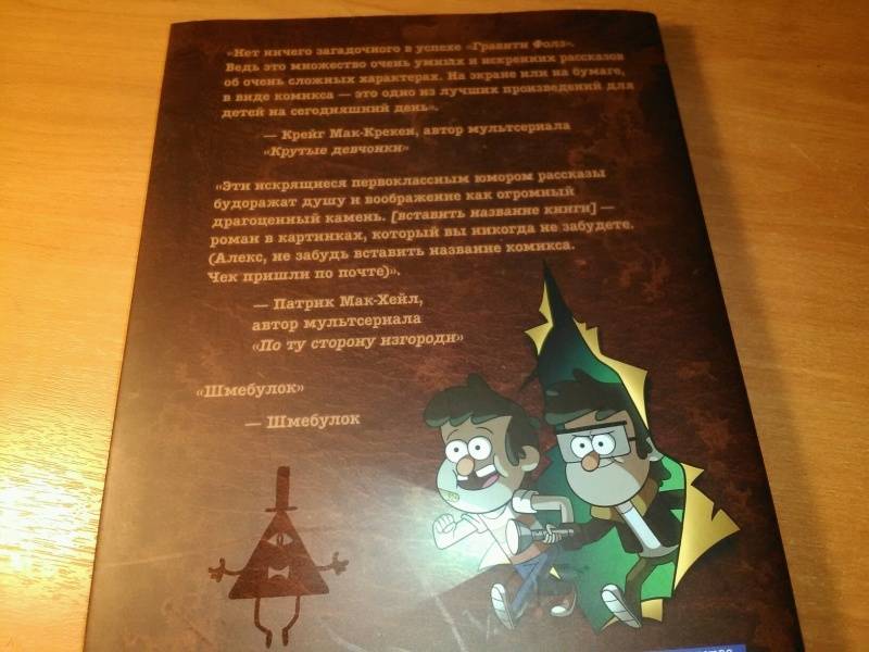 Объем, стр. 144 ISBN 978-5-699-99343-7 Автор Хирш Алекс, Сарнова Полина, Кэмпбелл Джим, Холмс Майк, Рамирес Стефани Художник Кэмпбелл Джим, Холмс Майк, Рамирес Стефани Переводчик Сарнова Полина Серия Disney. Гравити Фолз. Комиксы Масса 480 г Размеры 243x172x13 мм Язык Русский Минимальный возраст 12+ Год издания книги 2018 Тип обложки Твердый переплет Иллюстрации Цветные Вес, г 480г Размеры 243х172х13 мм - Отзывы