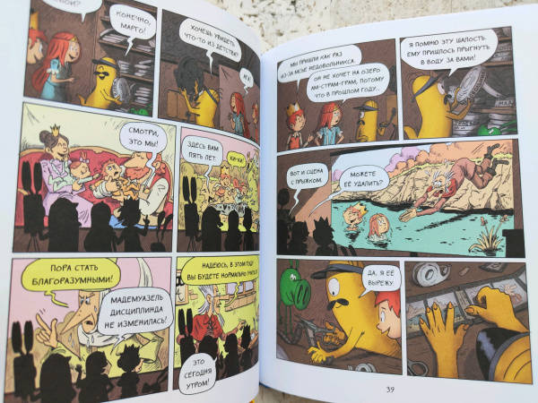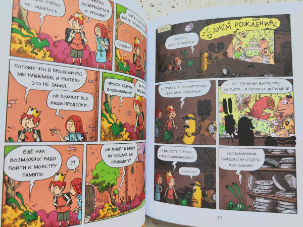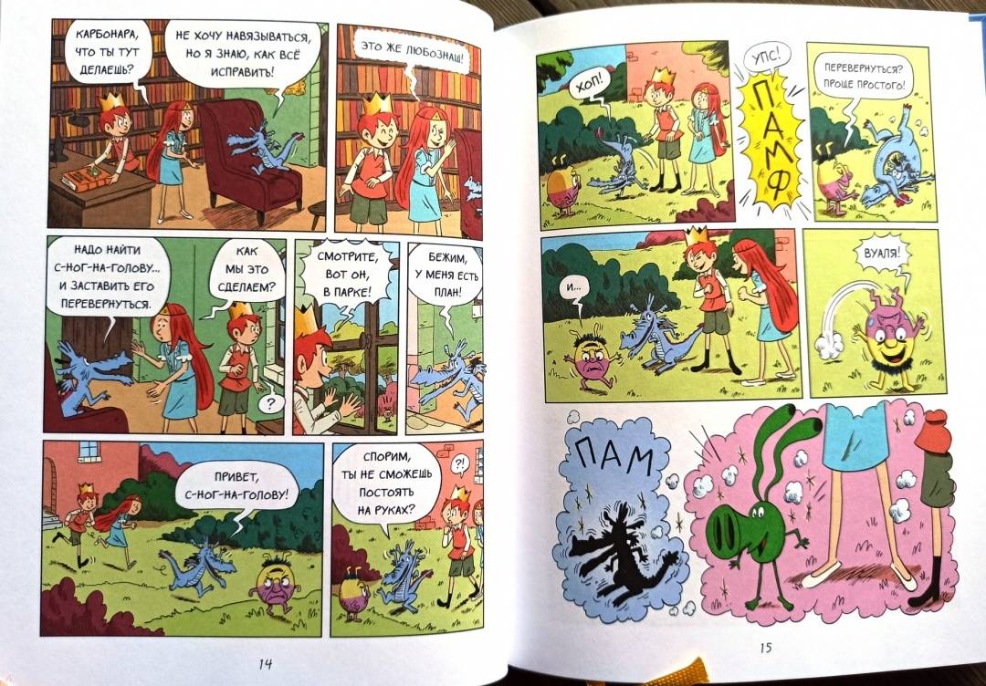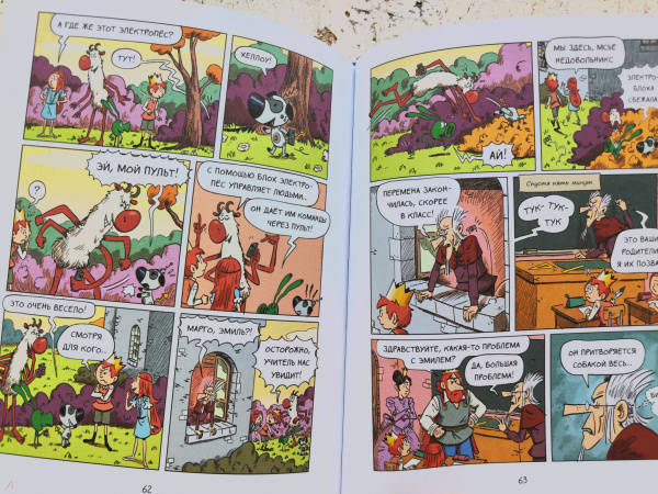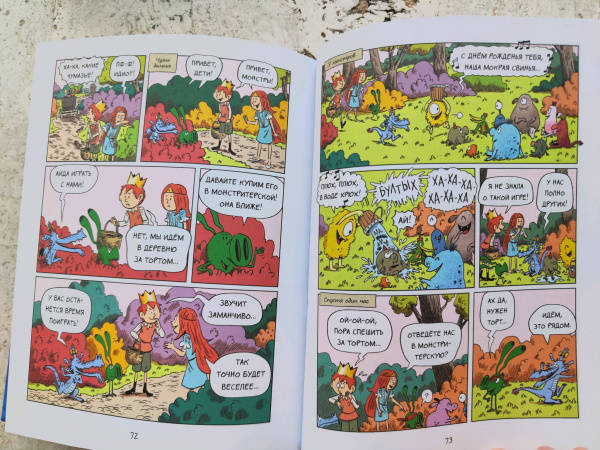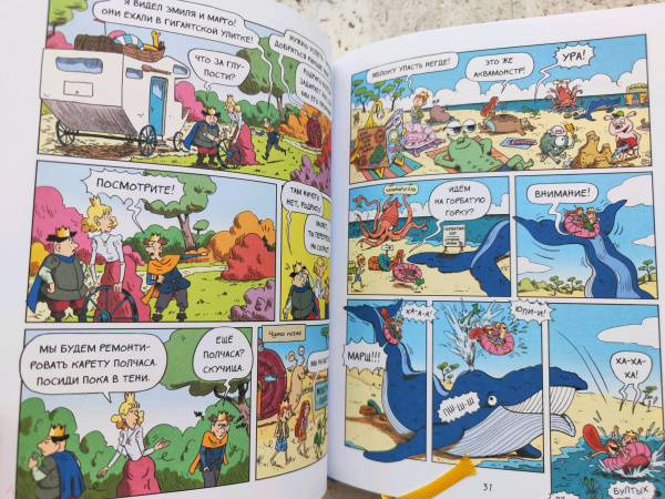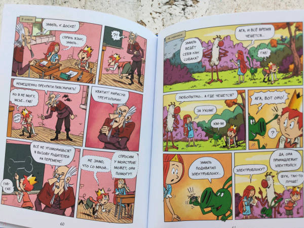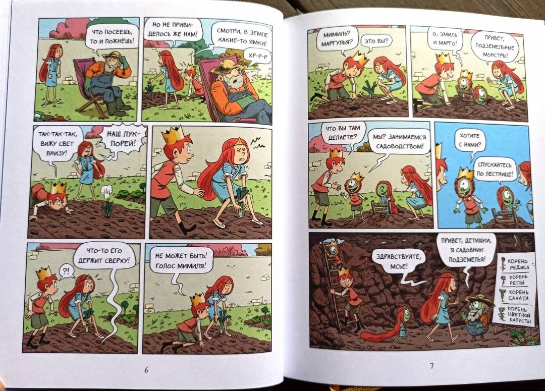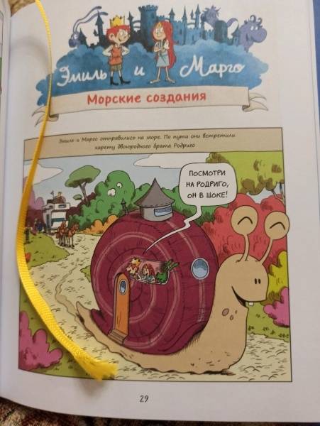 ОписаниеО книгеНовые истории Эмиля и Марго - в замке и не только!Эмиля и Марго ждут приключения. Они найдут пару Полумонстру, гуляя в заснеженном в парке, поедут на море в гигантском Улиткодоме и отправятся под землю спасать свой урожай.Вот только времени, чтобы успеть как следует повеселиться, порой не хватает... Хорошо, что монстры тут как тут и помогут продлить вечер на несколько часов. Правда, каждый раз, когда кажется, что всё наконец-то идет как надо, принца, принцессу и их необычных друзей ждет невероятный поворот.О серииЭмиль и Марго - озорные принц и принцесса. Как и все дети, они болеют, дурачатся, не очень-то любят учить уроки и заниматься уборкой. Эмиль и Марго живут в замке рядом с лесом, населенным монстриками. С такими соседями не соскучишься - принц и принцесса постоянно попадают во всякие переделки с этими монстриками, сводя с ума присматривающую за ними мадам Дисциплинду.Фишки книги- Волшебный мир, населенный забавными монстриками - не страшными, а добрыми и дружелюбными.- Яркие герои, которые будут близки детям.- Веселые, добрые истории о повседневных делах с примесью волшебства.- Описанные ситуации знакомы каждому ребенку: принц и принцесса убираются в комнате, болеют, ходят в школу и никогда не забывают озорничать.- Короткие рассказы (в каждой главе - всего 6 страниц) идеально подойдут для маленьких читателей: перед сном можно прочитать 2-3 истории и спокойно засыпать.- Знакомство с серией вы можете начать с любого тома, книги не связаны единым сюжетом.- Поможет ребенку начать читать самостоятельно.Для кого эта книгаДля детей от 5 лет и их родителей.Для тех, кому полюбились озорные приключения принца Эмиля и принцессы Марго.Для всей семьи, если вы любите читать и веселиться вместе.Для всех любителей комиксов.Для младшего школьного возраста.СвернутьО книгеНовые истории Эмиля и Марго - в замке и не только!Эмиля и Марго ждут приключения. Они найдут пару Полумонстру, гуляя в заснеженном в парке, поедут на море в гигантском Улиткодоме и отправятся под землю спасать свой урожай.Вот только времени, чтобы успеть как следует повеселиться, порой не хватает... Хорошо, что монстры тут как тут и помогут продлить вечер на несколько часов. Правда, каждый раз, когда кажется, что всё наконец-то идет как надо, принца, принцессу и их необычных друзей ждет невероятный поворот.О серииЭмиль и Марго - озорные принц и принцесса. Как и все дети, они болеют, дурачатся, не очень-то любят учить уроки и заниматься уборкой. Эмиль и Марго живут в замке рядом с лесом, населенным монстриками. С такими соседями не соскучишься - принц и принцесса постоянно попадают во всякие переделки с этими монстриками, сводя с ума присматривающую за ними мадам Дисциплинду.Фишки книги- Волшебный мир, населенный забавными монстриками - не страшными, а добрыми и дружелюбными.- Яркие герои, которые будут близки детям.- Веселые, добрые истории о повседневных делах с примесью волшебства.- Описанные ситуации знакомы каждому ребенку: принц и принцесса убираются в комнате, болеют, ходят в школу и никогда не забывают озорничать.- Короткие рассказы (в каждой главе - всего 6 страниц) идеально подойдут для маленьких читателей: перед сном можно прочитать 2-3 истории и спокойно засыпать.- Знакомство с серией вы можете начать с любого тома, книги не связаны единым сюжетом.- Поможет ребенку начат