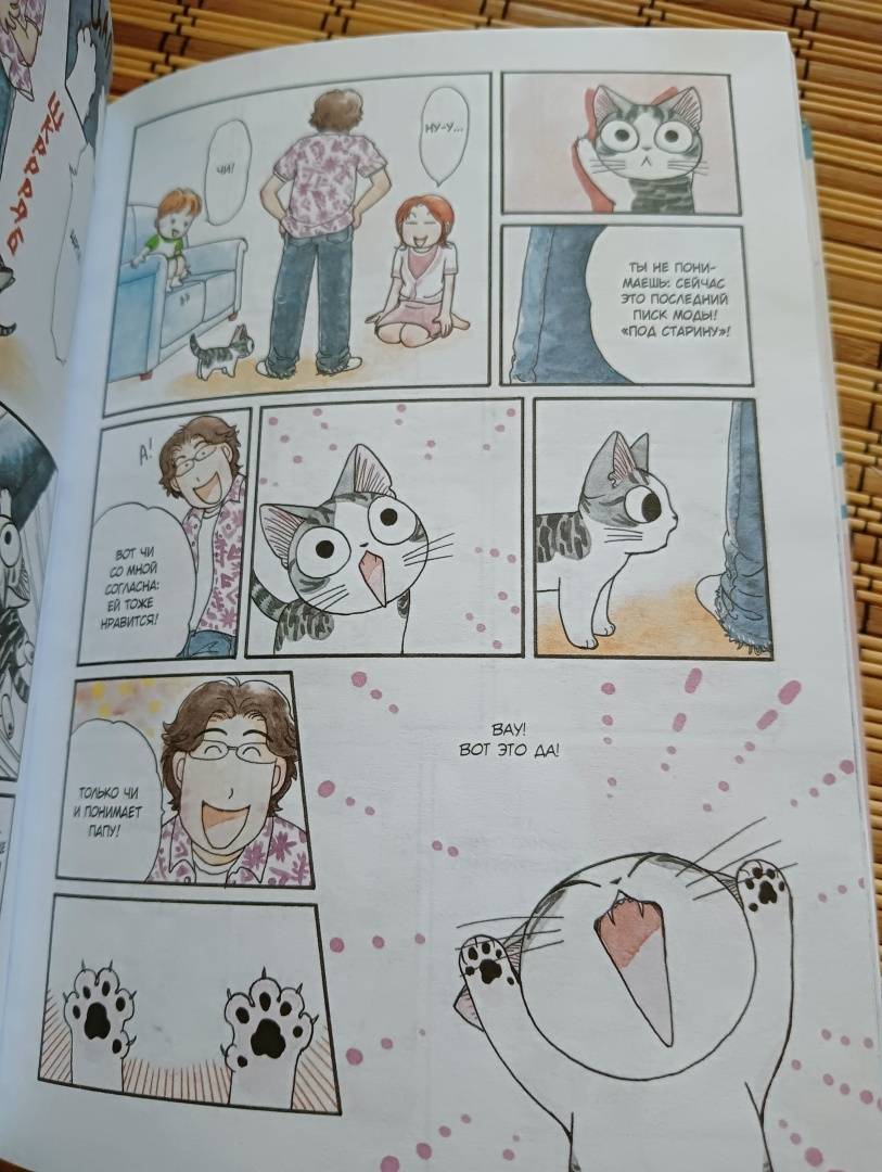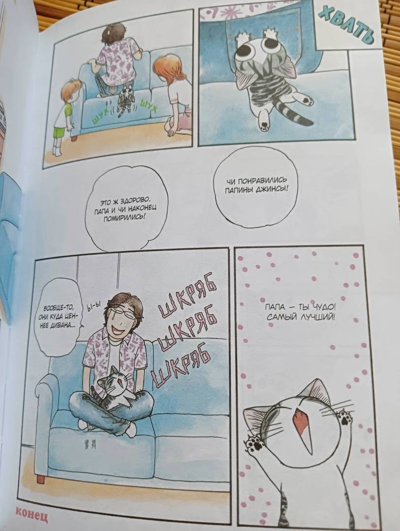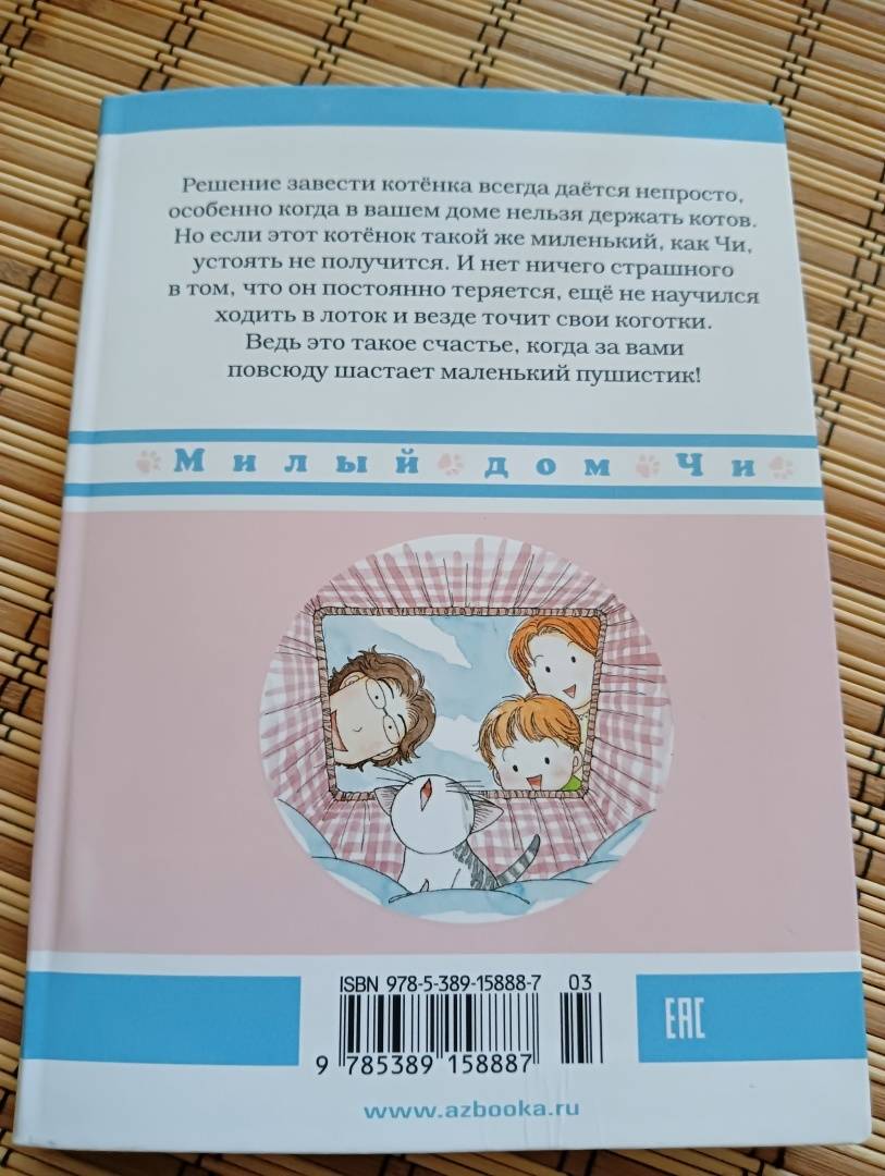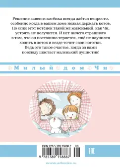 ОписаниеКвинтэссенция пушистой няшности и милоты, совершенно очаровательный котенок Чи умилял поклонников с 2004 года. Каждый, кто имел или хотел иметь дома котейку, не сможет взглянуть без улыбки на эту мангу. Мы видим мир глазами котика (на самом деле кошечки), который пугается собаки, играет с шнурками, гоняется за шариками и пьет молоко. И пусть вас не настораживает такой незамысловатый сюжет, читать эту мангу все равно, что играться со своим кошаком – в ней очень точно и очень мило отражены котячьи повадки, и мимимиметр просто зашкаливает.Детям до 3-х лет.Квинтэссенция пушистой няшности и милоты, совершенно очаровательный котенок Чи умилял поклонников с 2004 года. Каждый, кто имел или хотел иметь дома котейку, не сможет взглянуть без улыбки на эту мангу. Мы видим мир глазами котика (на самом деле кошечки), который пугается собаки, играет с шнурками, гоняется за шариками и пьет молоко. И пусть вас не настораживает такой незамысловатый сюжет, читать эту мангу все равно, что играться со своим кошаком – в ней очень точно и очень мило отражены котячьи повадки, и мимимиметр просто зашкаливает.Детям до 3-х лет.