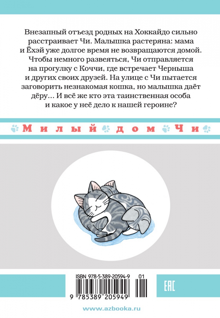 ОписаниеВнезапный отъезд родных на Хоккайдо сильно расстраивает Чи. Малышка растеряна: мама и Ёхэй уже долгое время не возвращаются домой. Чтобы немного развеяться, Чи отправляется на прогулку с Коччи, где встречает Черныша и других своих друзей. На улице с Чи пытается заговорить незнакомая кошка, но малышка дает дёру... И все же, кто эта таинственная особа и какое у неё дело к нашей героине?Внезапный отъезд родных на Хоккайдо сильно расстраивает Чи. Малышка растеряна: мама и Ёхэй уже долгое время не возвращаются домой. Чтобы немного развеяться, Чи отправляется на прогулку с Коччи, где встречает Черныша и других своих друзей. На улице с Чи пытается заговорить незнакомая кошка, но малышка дает дёру... И все же, кто эта таинственная особа и какое у неё дело к нашей героине?