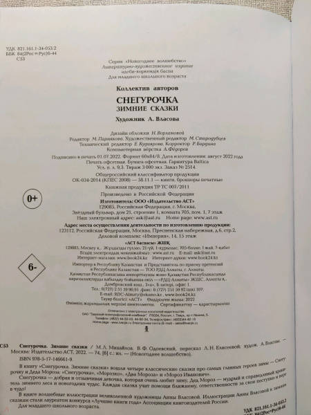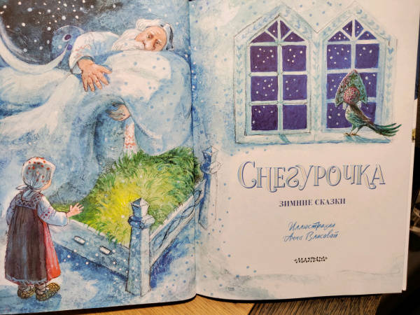 ОписаниеВ книгу "Снегурочка. Зимние сказки" вошли четыре самые знаменитые, классические, новогодние сказки – "Снегурочка", "Морозко", "Два Мороза" и "Мороз Иванович". Уютными зимними вечерами так интересно читать сказки про главных героев новогодних праздников и рассматривать великолепные иллюстрации, которые перенесут вас во владения Деда Мороза и Снегурочки! Счастливого Нового года и снежных, весёлых праздников. В этой книге удивительные иллюстрации, за которые художник Анна Власова стала лауреатом премии Ассоциации книгоиздателей России в 2022 году. Для младшего школьного возраста.В книгу "Снегурочка. Зимние сказки" вошли четыре самые знаменитые, классические, новогодние сказки – "Снегурочка", "Морозко", "Два Мороза" и "Мороз Иванович". Уютными зимними вечерами так интересно читать сказки про главных героев новогодних праздников и рассматривать великолепные иллюстрации, которые перенесут вас во владения Деда Мороза и Снегурочки! Счастливого Нового года и снежных, весёлых праздников. В этой книге удивительные иллюстрации, за которые художник Анна Власова стала лауреатом премии Ассоциации книгоиздателей России в 2022 году. Для младшего школьного возраста.