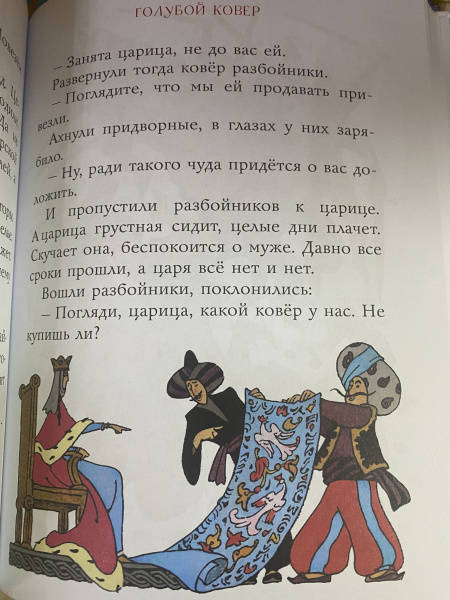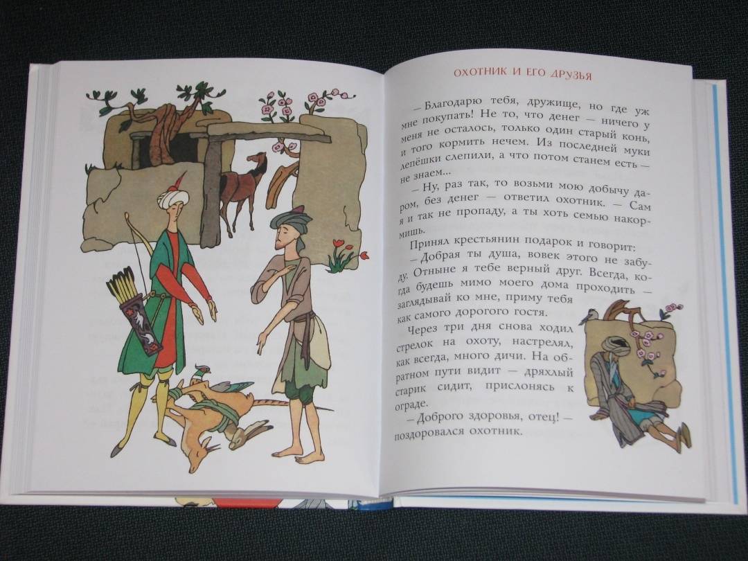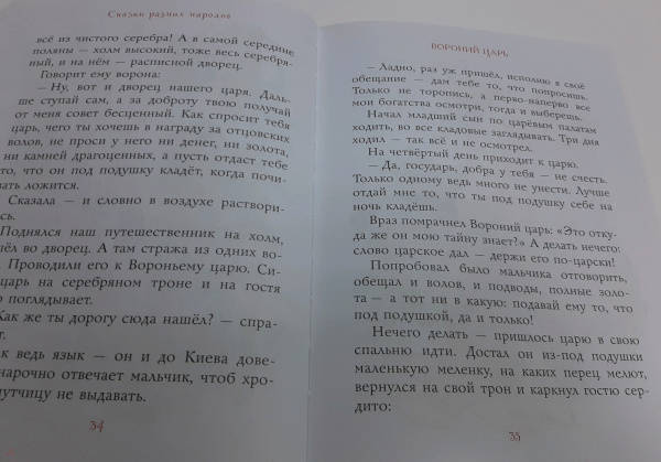 СвернутьСборник "Сказки разных народов" интересен тем, что в него вошли малоизвестные сказки с необычными сюжетами. Например, сыновья старика отправляются на поиски дворца Вороньего царя, а умные братья, благодаря своей проницательности и наблюдательности, обретают богатство. Обычно царевичи и царевны устраивают своим суженым испытания, а в одной из сказок, наоборот, царевичу пришлось овладеть ремеслом, чтобы жениться. Много народной мудрости в каждой сказке, но все они рассказывают об отваге, мудрости, доброте и любви.Рисунки Э. Булатова и О. Васильева.Для младшего школьного возраста.Проходят годы, минуют столетия, а сказка всё также имеет большое значение в воспитании следующих поколений. И неудивительно – ведь в каждой сказочной истории собрана народная мудрость. В нашу книгу вошли пятнадцать сказок, сложенных разными народами. Каждая из историй оригинальна по-своему, но все сказки рассказывают о торжестве справедливости, мудрости, доброте и любви. Представить сказочных героев помогут иллюстрации известных художников Э. Булатова и О. Васильева.