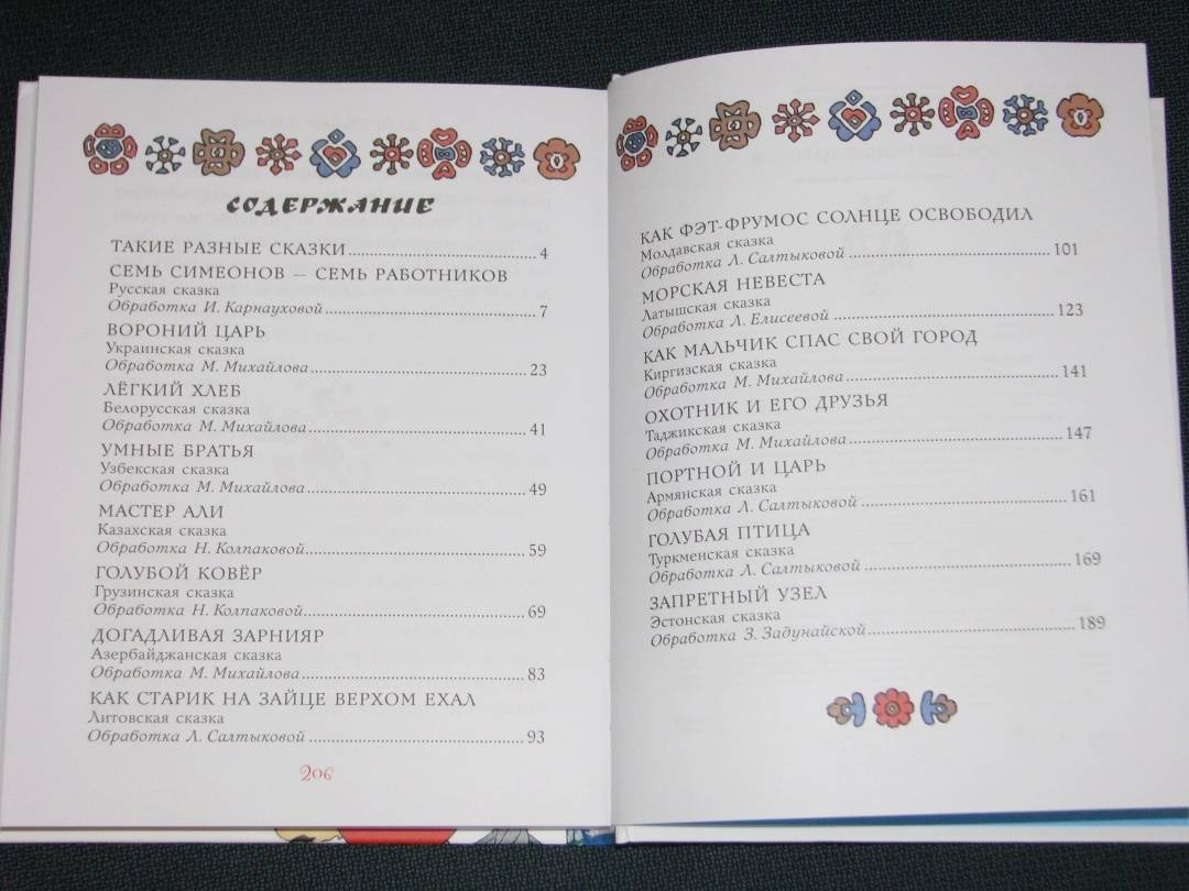 ОписаниеСборник "Сказки разных народов" интересен тем, что в него вошли малоизвестные сказки с необычными сюжетами. Например, сыновья старика отправляются на поиски дворца Вороньего царя, а умные братья, благодаря своей проницательности и наблюдательности, обретают богатство. Обычно царевичи и царевны устраивают своим суженым испытания, а в одной из сказок, наоборот, царевичу пришлось овладеть ремеслом, чтобы жениться. Много народной мудрости в каждой сказке, но все они рассказывают об отваге, мудрости, доброте и любви.Рисунки Э. Булатова и О. Васильева.Для младшего школьного возраста.Проходят годы, минуют столетия, а сказка всё также имеет большое значение в воспитании следующих поколений. И неудивительно – ведь в каждой сказочной истории собрана народная мудрость. В нашу книгу вошли пятнадцать сказок, сложенных разными народами. Каждая из историй оригинальна по-своему, но все сказки рассказывают о торжестве справедливости, мудрости, доброте и любви. Представить сказочных героев помогут иллюстрации известных художников Э. Булатова и О. Васильева.