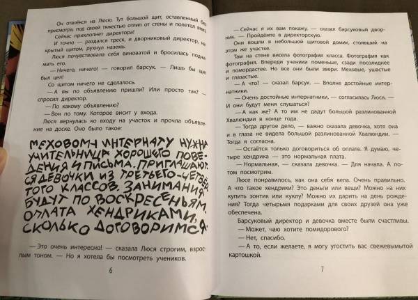 СвернутьВ одном дачном посёлке открылся необычный интернат - Меховой. Пушистые ученики этого суперсекретного заведения каждый день ходят на уроки и получают оценки, прямо как настоящие школьники. А кто их учит? Директор Мехмех и ученица четвёртого класса Люся Брюкина. Прочитайте эту весёлую повесть Эдуарда Успенского и вы сами захотите за парту к озорным ученикам - ласке, волку, белке и другим зверятам!Для младшего школьного возраста.Мальчики и девочки учатся в школах, а где учатся звери? В Меховом интернате. Да-да, в самой настоящей меховой школе с самыми настоящими уроками. Зверята учатся писать и считать, всё как в настоящей школе. Но… но со своим, меховым уклоном! Хотите побывать у них в гостях? Меховой интернат ждёт вас! Подружитесь с его директором Мехмехом, белкой Цоки-Цоки, муравьедом Биби-Моки, ежом Иглосски и другими учениками этого необычного заведения. А заодно помогите их учительнице, четверокласснице Люсе Брюкиной, вести уроки и спасти интернат от нехороших людей! Зверятам и Люсе без вас не справиться!