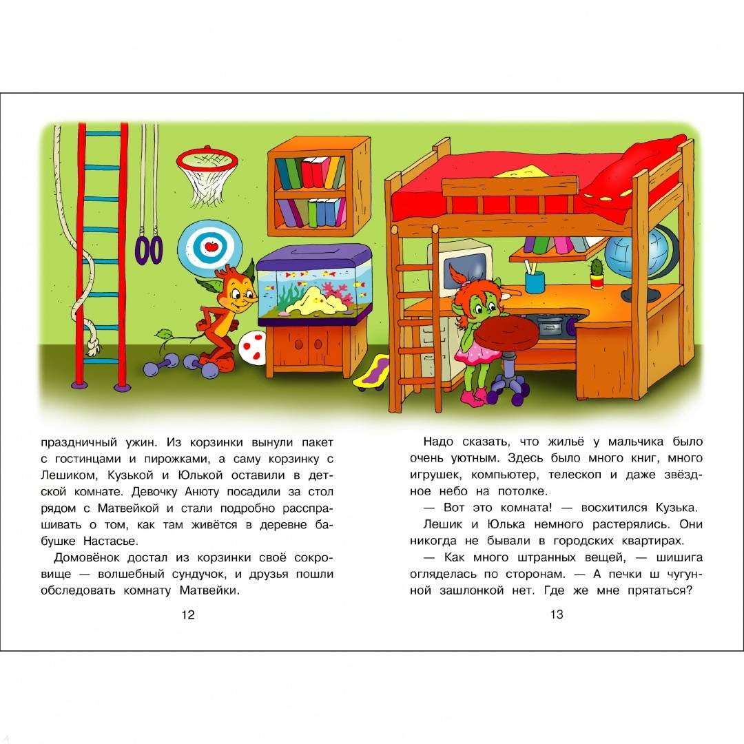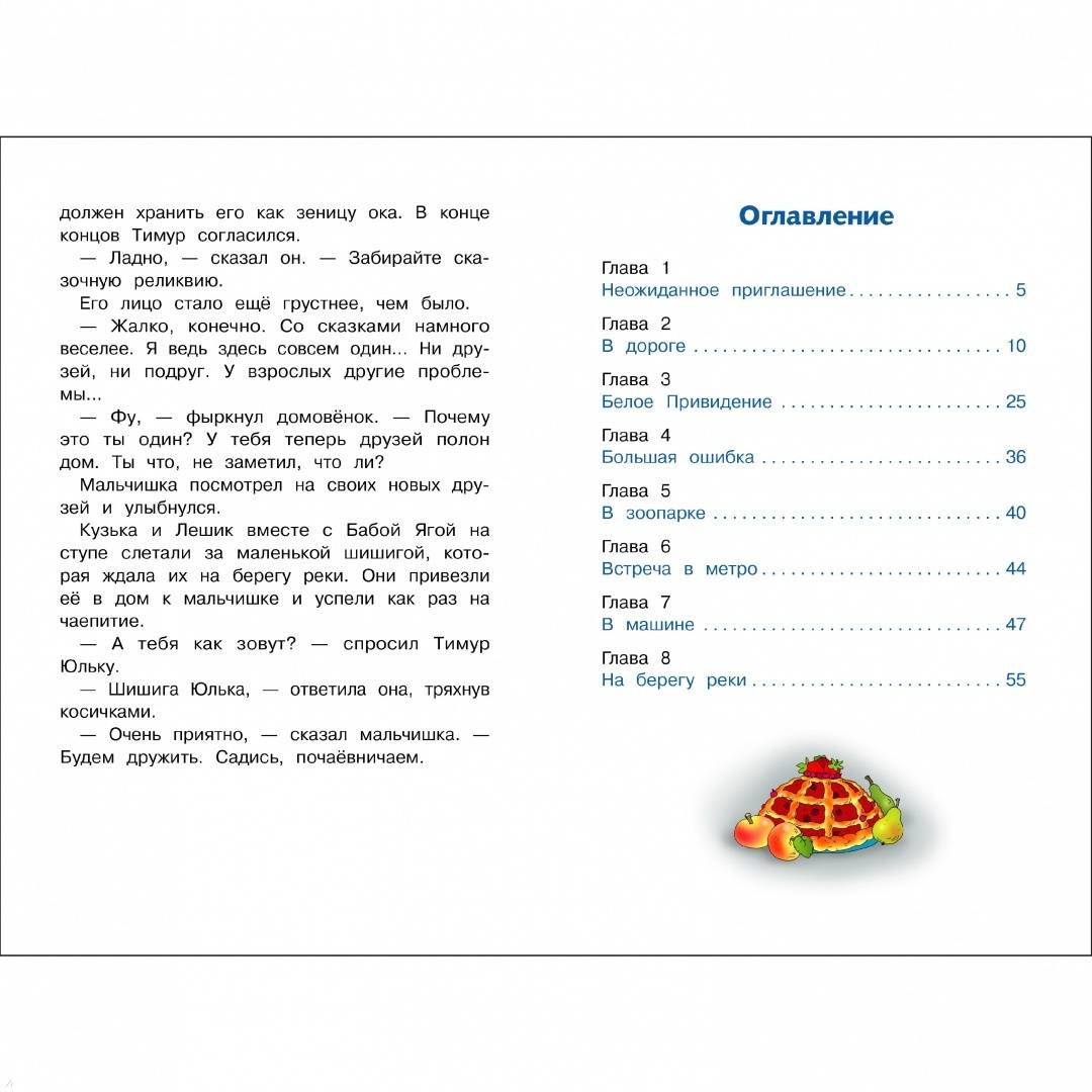 ОписаниеСказочная повесть Галины Александровой о приключениях маленького домовёнка из серии “Библиотека школьника”. Анютка собралась в гости к двоюродному братцу Матвейке, который жил в городе. Кузька решил отправиться вместе с ней. А заодно пригласил и своих друзей — Лешика и шишигу Юльку. Сколько удивительного и невиданного оказалось в большом городе! Кузька так засмотрелся, что потерял свой волшебный сундучок. Как же теперь его разыскать?..Книга для детей младшего школьного возраста из библиотеки школьника.Сказочная повесть Галины Александровой о приключениях маленького домовёнка из серии “Библиотека школьника”. Анютка собралась в гости к двоюродному братцу Матвейке, который жил в городе. Кузька решил отправиться вместе с ней. А заодно пригласил и своих друзей — Лешика и шишигу Юльку. Сколько удивительного и невиданного оказалось в большом городе! Кузька так засмотрелся, что потерял свой волшебный сундучок. Как же теперь его разыскать?..Книга для детей младшего школьного возраста из библиотеки школьника.
