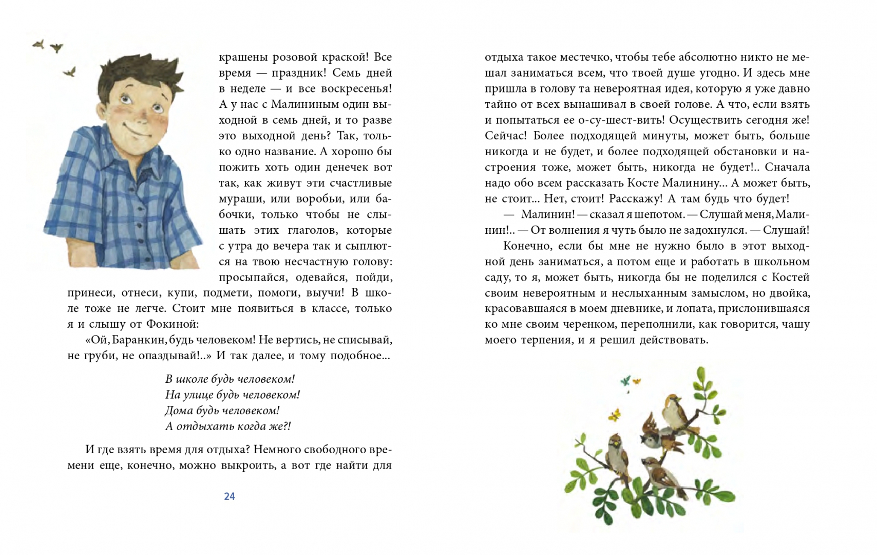 ОписаниеЕсли бы Костя Малинин и Юра Баранкин не получили двойки по геометрии, то ничего невероятного, возможно, и не произошло бы. Но друзьям так не хотелось исправлять оценки, что они готовы были на что угодно... даже превратиться в воробьев или бабочек! Никаких уроков, сплошные каникулы и свободная жизнь - разве не чудо? А если верить в чудеса, то они непременно случаются. Знаменитую повесть-сказку известного детского писателя Валерия Медведева знают и любят уже несколько поколений читателей.Для среднего школьного возраста.Если бы Костя Малинин и Юра Баранкин не получили двойки по геометрии, то ничего невероятного, возможно, и не произошло бы. Но друзьям так не хотелось исправлять оценки, что они готовы были на что угодно... даже превратиться в воробьев или бабочек! Никаких уроков, сплошные каникулы и свободная жизнь - разве не чудо? А если верить в чудеса, то они непременно случаются. Знаменитую повесть-сказку известного детского писателя Валерия Медведева знают и любят уже несколько поколений читателей.Для среднего школьного возраста.