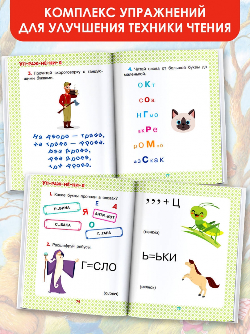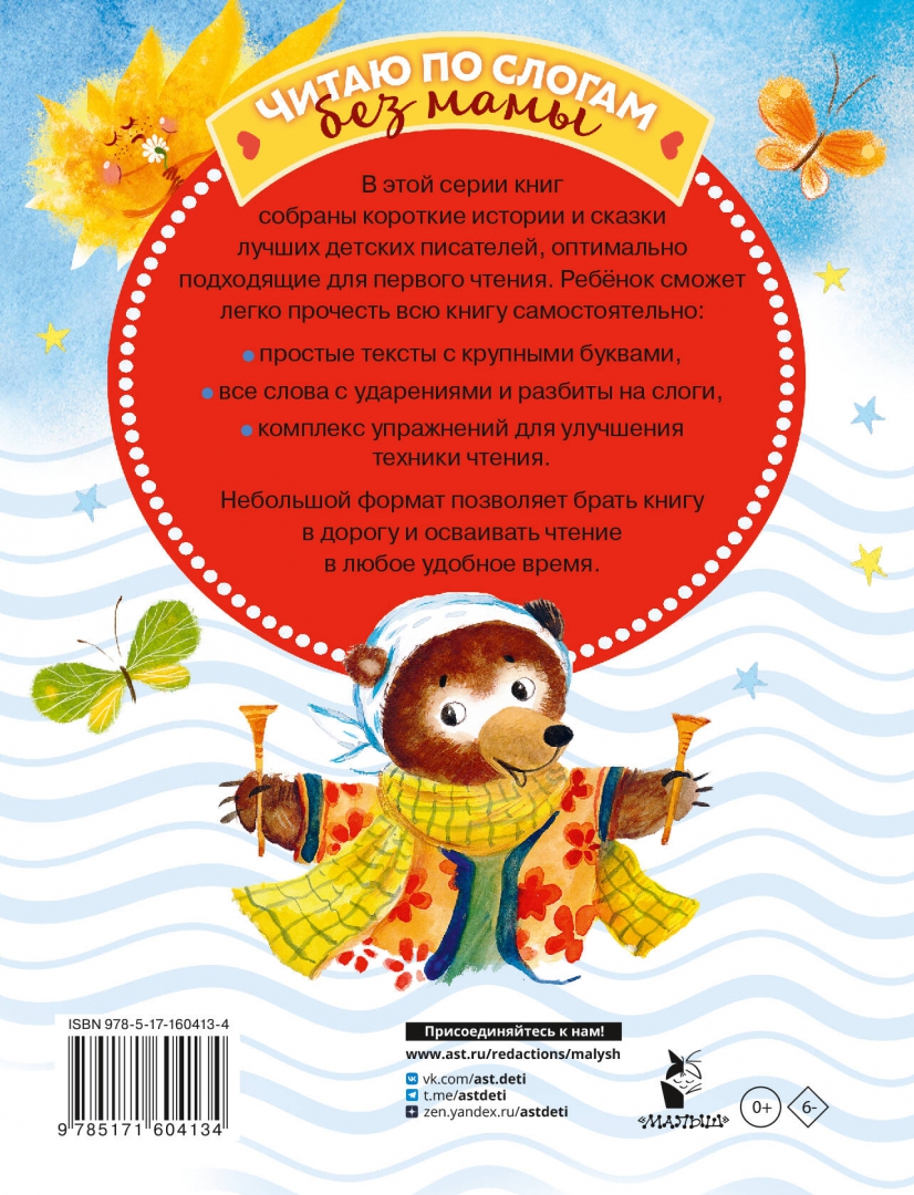 ОписаниеВ книгу вошли маленькие сказки С. Козлова. М. Пляцковского, С. Прокофьевой и других любимых детских писателей. Короткие истории можно легко прочитать за несколько минут. Это поможет справиться со страхом большого текста и сохранить интерес. Ребята познакомятся с непоседливым медвежонком Умкой, выучат секретный язык котёнка Гава и научатся ловить звёзды с Ёжиком и Медвежонком. Милые герои и увлекательные приключения обязательно понравятся вашим малышам, а крупные буквы и ударения помогут им прочитать все тексты самостоятельно. Книга дополнена упражнениями для совершенствования техники чтения.