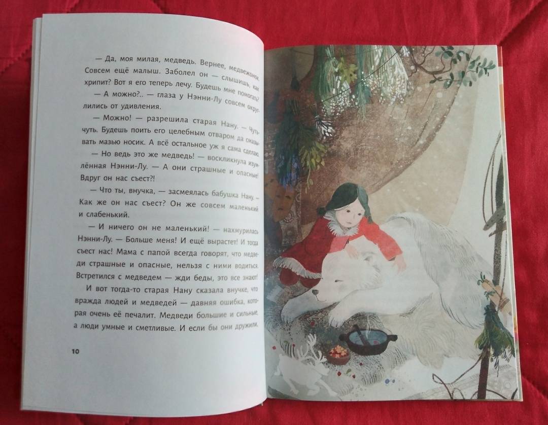 ОписаниеТак уж повелось, что люди и белые медведи - извечные враги. Почему? Точно на этот вопрос не могут ответить даже старики - ни человеческого, ни медвежьего племени. Поговаривают, что когда-то, в незапамятные времена, между ними произошла битва, и с тех пор все попытки подружиться оборачивались большой бедой.Бабушка Нану - шаманка. Она понимает язык зверей и птиц и однажды вылечила медвежонка Бернике. Ей помогала внучка Нэнни-Лу. На дружбу девочки и медвежонка смотрели сквозь пальцы, пока они были детьми. Но шли годы, и родители всё чаще высказывали недовольство. Неужели им придётся расстаться, и нельзя будет, как прежде, делиться историями и смотреть вместе на звёздное небо? За дружбу придётся побороться, а для этого - совершить большое путешествие, многому научиться и даже кое-кого спасти.Лита Ли - настоящий человек книги: по образованию она филолог, работала библиотекарем, корректором, а сейчас она - редактор. Ещё Лита Ли исследует сказки и знает о них всё. Её дебютная книга проникнута любовью к северной природе и тревогой за её хрупкую красоту. Проиллюстрировала книгу Анна Панкратова.Для младшего и среднего школьного возраста.СвернутьТак уж повелось, что люди и белые медведи - извечные враги. Почему? Точно на этот вопрос не могут ответить даже старики - ни человеческого, ни медвежьего племени. Поговаривают, что когда-то, в незапамятные времена, между ними произошла битва, и с тех пор все попытки подружиться оборачивались большой бедой.Бабушка Нану - шаманка. Она понимает язык зверей и птиц и однажды вылечила медвежонка Бернике. Ей помогала внучка Нэнни-Лу. На дружбу девочки и медвежонка смотрели сквозь пальцы, пока они были детьми. Но шли годы, и родители всё чаще высказывали недовольство. Неужели им придётся расстаться, и нельзя будет, как прежде, делиться историями и смотреть вместе на звёздное небо? За дружбу придётся побороться, а для этого - совершить большое путешествие, многому научиться и даже кое-кого спасти.Лита Ли - настоящий человек книги: по образованию она филолог, работала библиотекарем, корректором, а сейчас она - редактор. Ещё Лита Ли исследует сказки и знает о них всё. Её дебютная книга проникнута любовью к северной природе и тревогой за её хрупкую красоту. Проиллюстрировала книгу Анна Панкратова.Для младшего и среднего школьного возраста.СвернутьСвернуть