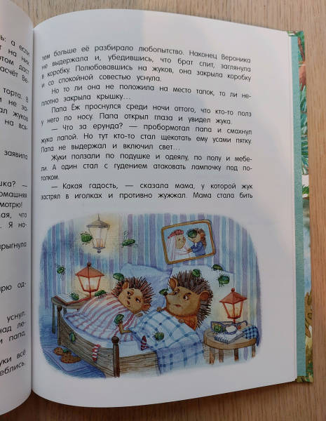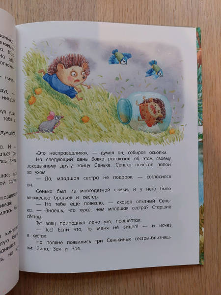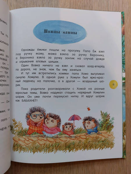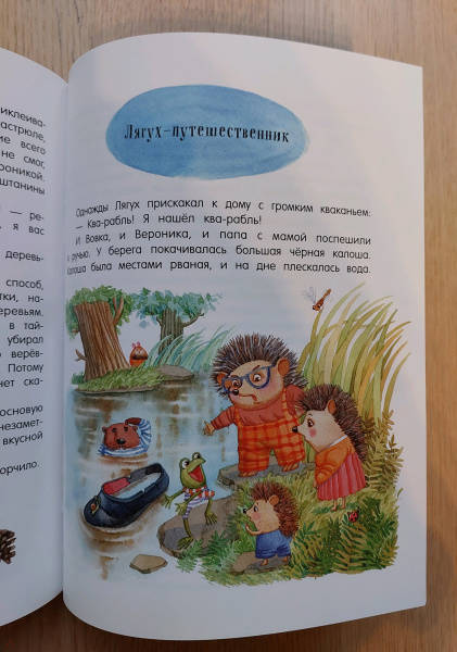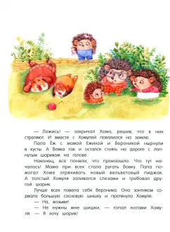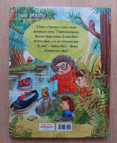 ОписаниеВеселые и поучительные сказки о семье ежиков и их друзьях. С Ежом-папой, Ежихой-мамой, ежатами Вовкой и Вероникой, которые живут в одном не очень-дремучем-лесу, постоянно происходят какие-нибудь забавные истории. То они обнаруживают в кастрюле с окрошкой лягушонка Лягуха, то мама сушит на своих колючках грибы, то ежик Вовка скачет верхом на волке. Словом, их жизнь полна удивительных приключений.Для детей 5-7 лет.Веселые и поучительные сказки о семье ежиков и их друзьях. С Ежом-папой, Ежихой-мамой, ежатами Вовкой и Вероникой, которые живут в одном не очень-дремучем-лесу, постоянно происходят какие-нибудь забавные истории. То они обнаруживают в кастрюле с окрошкой лягушонка Лягуха, то мама сушит на своих колючках грибы, то ежик Вовка скачет верхом на волке. Словом, их жизнь полна удивительных приключений.Для детей 5-7 лет.