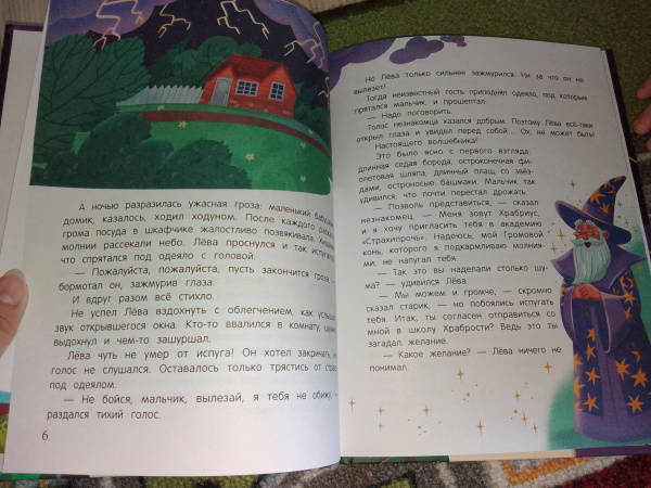 ОписаниеЛёва боялся всего на свете; темноты, пауков, подкроватных чудовищ, прививок, незнакомых людей и даже обыкновенных собак. Но однажды во время грозы он познакомился с волшебником Храбриусом, который предложил Лёве место ученика в волшебной академии "Страхипрочь". Для того чтобы научиться справляться со своими страхами, мальчику придётся преодолеть множество испытаний: пройти через сад ночных кошмаров, не потеряться в жутком лабиринте, решить загадки привидений, подружиться со страшным зверем и справиться с коварной ведьмой. Без дружеской поддержки и веры в собственные силы Лёве точно не обойтись!Книга поможет справиться с детскими страхами и увлечет ребенка яркими иллюстрациями.Лёва боялся всего на свете; темноты, пауков, подкроватных чудовищ, прививок, незнакомых людей и даже обыкновенных собак. Но однажды во время грозы он познакомился с волшебником Храбриусом, который предложил Лёве место ученика в волшебной академии "Страхипрочь". Для того чтобы научиться справляться со своими страхами, мальчику придётся преодолеть множество испытаний: пройти через сад ночных кошмаров, не потеряться в жутком лабиринте, решить загадки привидений, подружиться со страшным зверем и справиться с коварной ведьмой. Без дружеской поддержки и веры в собственные силы Лёве точно не обойтись!Книга поможет справиться с детскими страхами и увлечет ребенка яркими иллюстрациями.