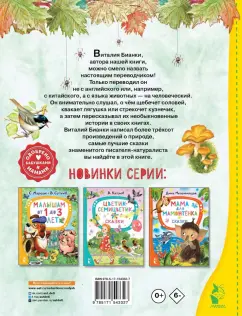 СвернутьВиталий Валентинович Бианки - знаменитый писатель-натуралист. За всё время он написал более 300 произведений, и большинство из них - для детей. В своих рассказах и сказках Виталий Бианки по-новому раскрывает загадочный мир природы: он обращает внимание юного читателя на, казалось бы, обыкновенные вещи. Но в его произведениях они вдруг становятся удивительными и бесценными, будь то капля росы на траве или первый снег.В издание вошли лучшие сказки Виталия Бианки о природе - "Чей нос лучше?", "Терентий-Тетерев", "Кто чем поёт?" и другие.Рисунки известного современного художника И. Цыганкова.Для дошкольного возраста.Виталия Бианки, автора нашей книги, можно смело назвать настоящим переводчиком! Только переводил он, скажем, не с английского или китайского, а с языка животных – на человеческий. Он внимательно слушал, о чём щебечет соловей, квакает лягушка или стрекочет кузнечик, а затем пересказывал их необыкновенные истории в своих книгах. Виталий Бианки написал более трёхсот произведений о природе, самые лучше сказки знаменитого писателя-натуралиста вы найдёте в этой книге.