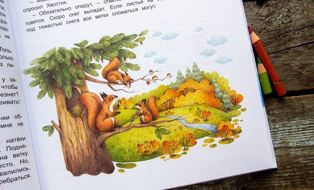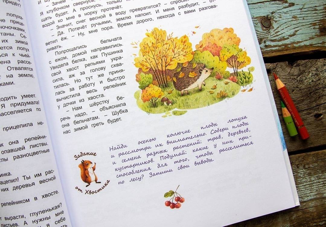 ОписаниеЛюбознательные бельчата, Пушинка и Хвостик, совсем недавно появились на свет, и им многое нужно узнать. Первую загадку им сама осень загадала: почему листья в лесу опадают? Только решили малыши эту задачу, как новые подоспели, одна другой интереснее. Как лопух ходить научился? Зачем глухари камни глотают? Разобрались бельчата с многочисленными осенними секретами обитателей леса, а там и зима пришла - с новыми загадками. Зачем лисы в снег ныряют? Почему лось рога сбрасывает?.. Весну Пушинка и Хвостик встретили повзрослевшими, но всё такими же любопытными. С первыми лучами тёплого солнышка стали они разбираться, кто из птиц первым на родину возвращается и для кого цветы растут. Ну а летом в лесу жизнь так и кипит - просто раздолье для пушистых следопытов. Они выяснили, кто не птица, а летает, и прошли по следу таинственных невидимок. Ни за что не смогли бы Пушинка и Хвостик вдвоём столько открытий о лесной жизни сделать, но им верные друзья помогли. Бесстрашный мышонок, весёлый заяц, огромный лось и даже грозный серый волк - все делятся своими знаниями, помогают раскрывать лесные секреты. А бельчатам всё интересно: не жизнь у них, а бесконечный урок в школе, которую открыла сама природа. Пушинка и Хвостик в этой школе - самые настоящие отличники, первые ученики. Они хотят и твои знания проверить. Готов сдать свой первый экзамен - блеснуть знаниями привычек лесных жителей? Книга адресована детям от 4 лет.СвернутьЛюбознательные бельчата, Пушинка и Хвостик, совсем недавно появились на свет, и им многое нужно узнать. Первую загадку им сама осень загадала: почему листья в лесу опадают? Только решили малыши эту задачу, как новые подоспели, одна другой интереснее. Как лопух ходить научился? Зачем глухари камни глотают? Разобрались бельчата с многочисленными осенними секретами обитателей леса, а там и зима пришла - с новыми загадками. Зачем лисы в снег ныряют? Почему лось рога сбрасывает?.. Весну Пушинка и Хвостик встретили повзрослевшими, но всё такими же любопытными. С первыми лучами тёплого солнышка стали они разбираться, кто из птиц первым на родину возвращается и для кого цветы растут. Ну а летом в лесу жизнь так и кипит - просто раздолье для пушистых следопытов. Они выяснили, кто не птица, а летает, и прошли по следу таинственных невидимок. Ни за что не смогли бы Пушинка и Хвостик вдвоём столько открытий о лесной жизни сделать, но им верные друзья помогли. Бесстрашный мышонок, весёлый заяц, огромный лось и даже грозный серый волк - все делятся своими знаниями, помогают раскрывать лесные секреты. А бельчатам всё интересно: не жизнь у них, а бесконечный урок в школе, которую открыла сама природа. Пушинка и Хвостик в этой школе - самые настоящие отличники, первые ученики. Они хотят и твои знания проверить. Готов сдать свой первый экзамен - блеснуть знаниями привычек лесных жителей? Книга адресована детям от 4 лет.СвернутьСвернуть
