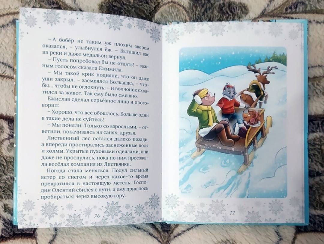 ОписаниеТретья часть удивительных приключений девочки-ежонка Ежимилы в Листвянке. В первой повести-сказке "Ежимила - принцесса Листвянки" главная героиня радуется лету и находит себе верного друга Волкашку. Во второй книге "Волшебница по имени Ежимила" в лиственный лес приходит осень, и лучшие друзья отправляются в лесную школу. А зимой в Листвянке зверята лепят снеговиков, катаются на коньках и готовятся к Новому году. Но как его отпраздновать с хвойной красавицей, если в лиственном лесу ни ели, ни сосны не растут? Неужели его жителям снова придётся хороводы вокруг клёна водить? Ну уж нет! В этой истории Ежимила и Волкашка не только ёлку добудут, но и вылечат старенькую сову Сователлу, а хомячку Хомке помогут обрести маму.Третья часть удивительных приключений девочки-ежонка Ежимилы в Листвянке. В первой повести-сказке "Ежимила - принцесса Листвянки" главная героиня радуется лету и находит себе верного друга Волкашку. Во второй книге "Волшебница по имени Ежимила" в лиственный лес приходит осень, и лучшие друзья отправляются в лесную школу. А зимой в Листвянке зверята лепят снеговиков, катаются на коньках и готовятся к Новому году. Но как его отпраздновать с хвойной красавицей, если в лиственном лесу ни ели, ни сосны не растут? Неужели его жителям снова придётся хороводы вокруг клёна водить? Ну уж нет! В этой истории Ежимила и Волкашка не только ёлку добудут, но и вылечат старенькую сову Сователлу, а хомячку Хомке помогут обрести маму.