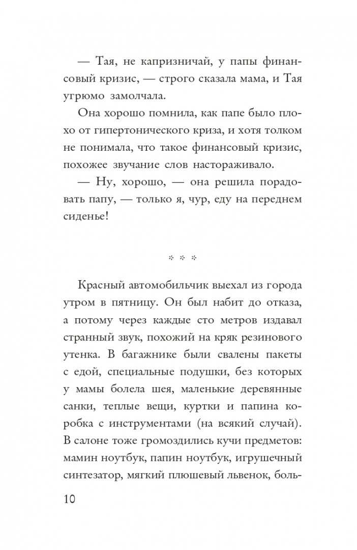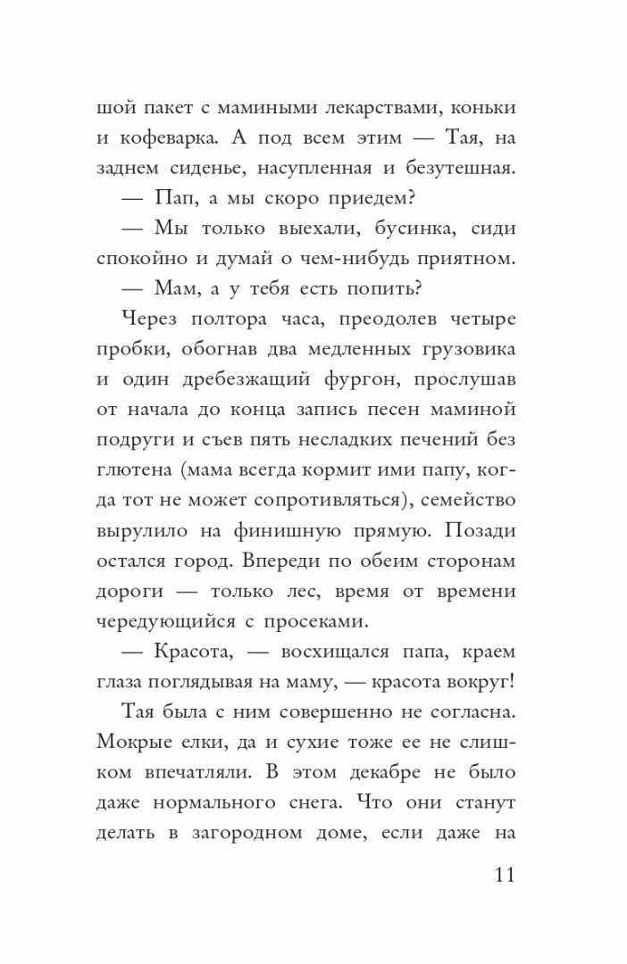 ОписаниеКогда счастливое семейство, мама, папа и дочка Тая, уезжает на зимние каникулы в загородный домик, никто из них даже не подозревает о том, какие приключения и знакомства им предстоят. И не только с детьми. Бабушка Корделия живет с внуком Степаном, она странно говорит, напевает чудаковатые песенки, слишком ярко одевается, водит грузовик, а еще умеет оживлять старые сны. Это сны о страхах. В "Бесстрашной сказке" нет ни одного персонажа, который бы чего-нибудь не боялся: остаться сиротой, потерять лучшего друга, оказаться плохим человеком. Даже самый классный в мире папа боится стать плохим писателем. Каким образом герои будут преодолевать свои страхи и чем все это обернется? Перевоплощением, конечно. И настоящей, отнюдь не сказочной, борьбой добра и зла.Когда счастливое семейство, мама, папа и дочка Тая, уезжает на зимние каникулы в загородный домик, никто из них даже не подозревает о том, какие приключения и знакомства им предстоят. И не только с детьми. Бабушка Корделия живет с внуком Степаном, она странно говорит, напевает чудаковатые песенки, слишком ярко одевается, водит грузовик, а еще умеет оживлять старые сны. Это сны о страхах. В "Бесстрашной сказке" нет ни одного персонажа, который бы чего-нибудь не боялся: остаться сиротой, потерять лучшего друга, оказаться плохим человеком. Даже самый классный в мире папа боится стать плохим писателем. Каким образом герои будут преодолевать свои страхи и чем все это обернется? Перевоплощением, конечно. И настоящей, отнюдь не сказочной, борьбой добра и зла.