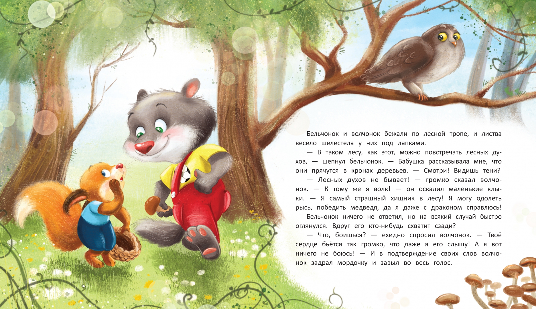 ОписаниеВолчонок думал, что он очень храбрый и никого не боится. Он даже похвастался этим перед своим другом - бельчонком. Однако, услышав в кустах шорох, волчонок перепугался и, бросив друга, помчался домой. Он рассказал маме о том, что приключилось в лесу, а мама помогла ему понять, что всё ещё можно исправить.Волчонок думал, что он очень храбрый и никого не боится. Он даже похвастался этим перед своим другом - бельчонком. Однако, услышав в кустах шорох, волчонок перепугался и, бросив друга, помчался домой. Он рассказал маме о том, что приключилось в лесу, а мама помогла ему понять, что всё ещё можно исправить.