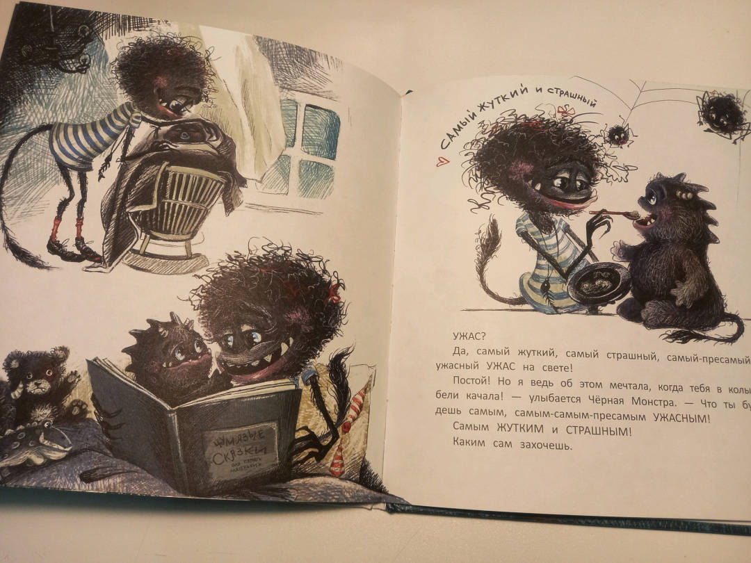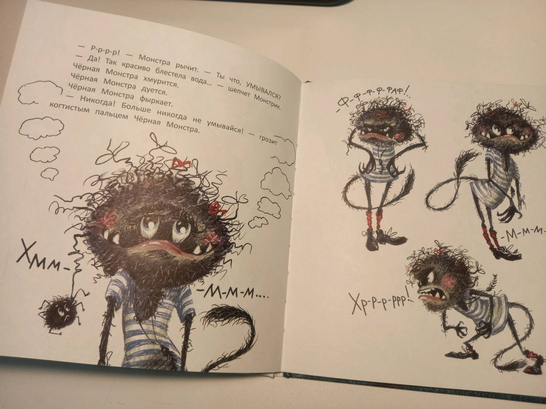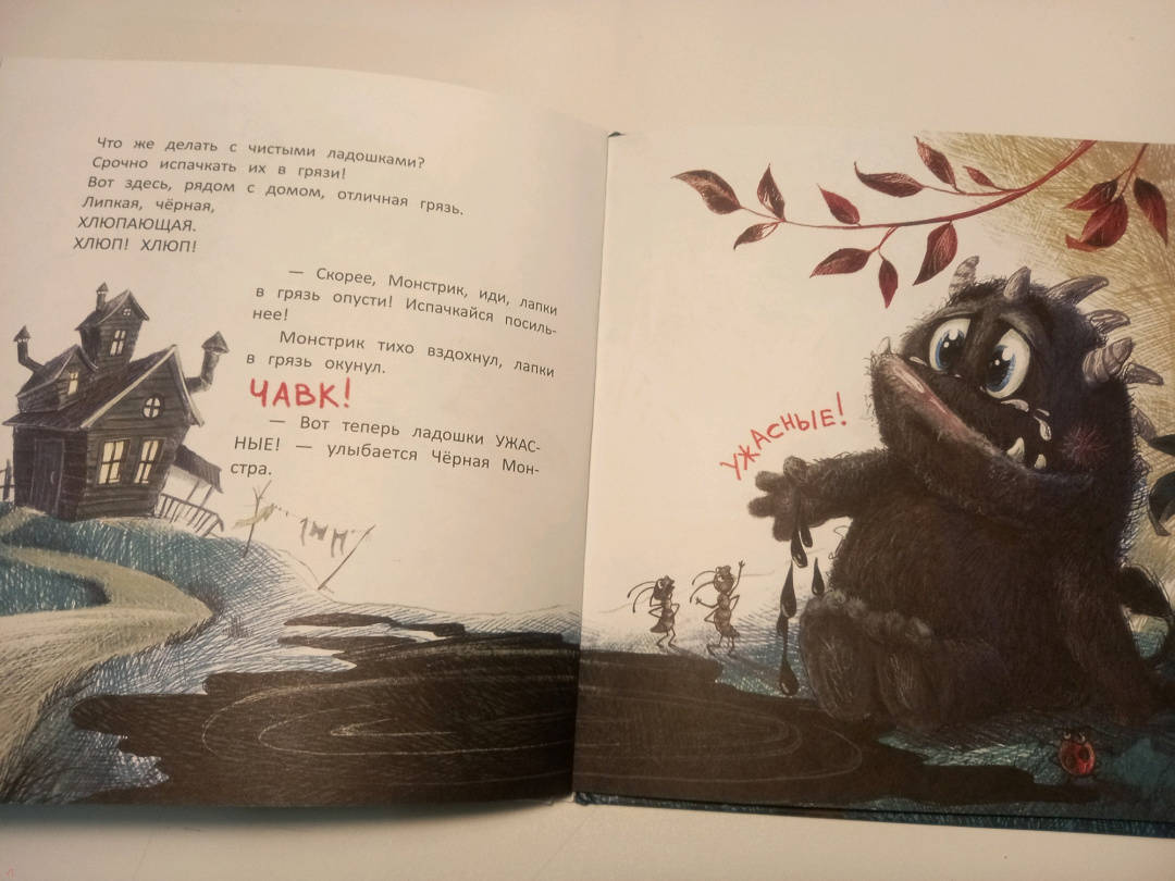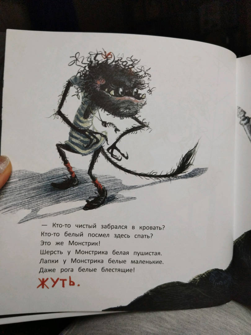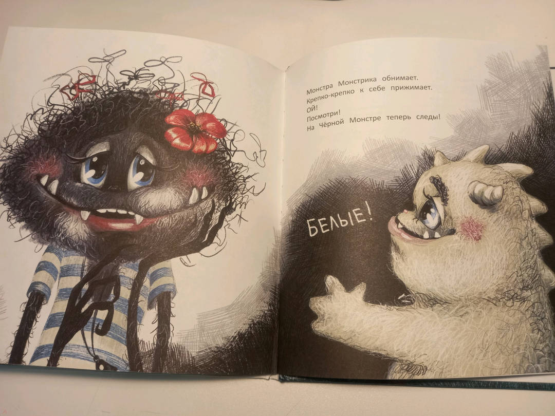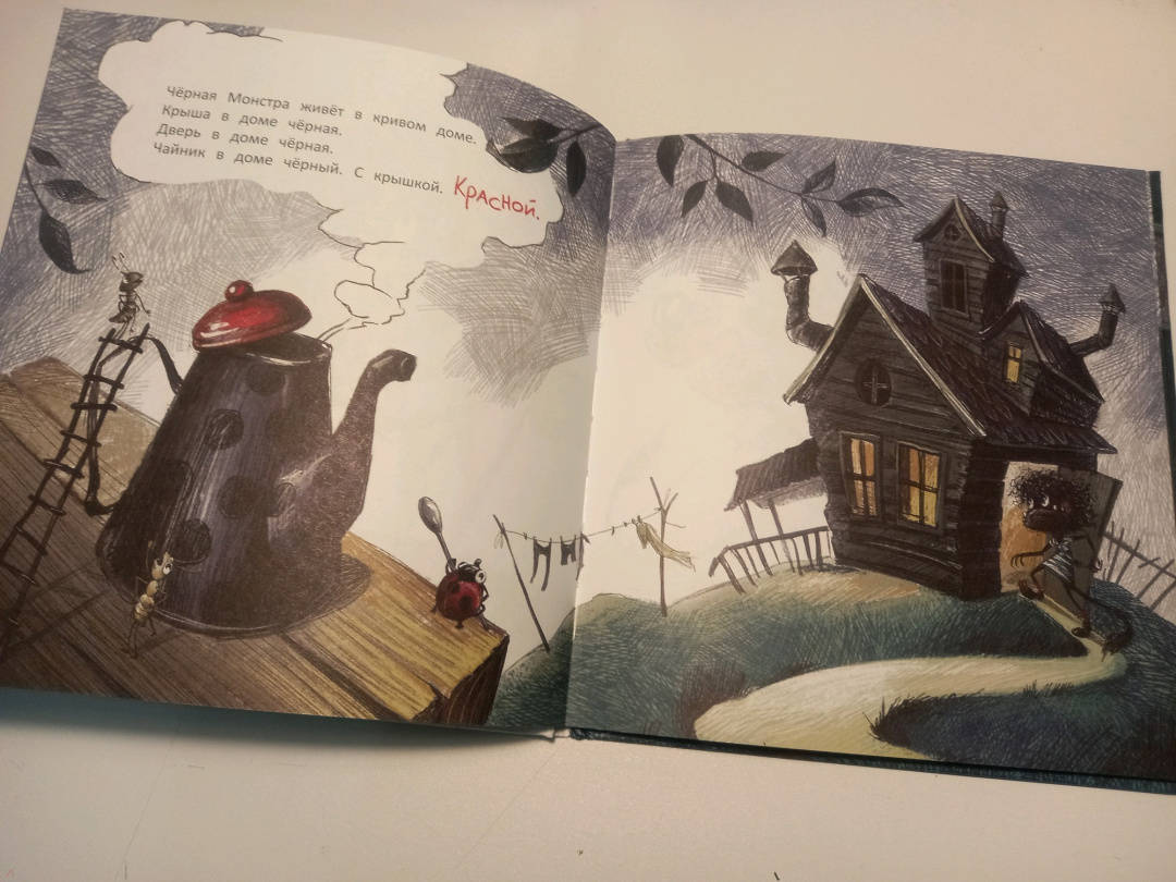 ОписаниеЧёрная Монстра живёт в чёрном доме, пьёт чёрный чай из чёрной чашки и мечтает о том, что её сын вырастет самым страшным чёрным Монстром на свете. Но однажды Чёрная Монстра с ужасом обнаруживает, что у её сына белый-белый хвост.Чёрная Монстра живёт в чёрном доме, пьёт чёрный чай из чёрной чашки и мечтает о том, что её сын вырастет самым страшным чёрным Монстром на свете. Но однажды Чёрная Монстра с ужасом обнаруживает, что у её сына белый-белый хвост.
