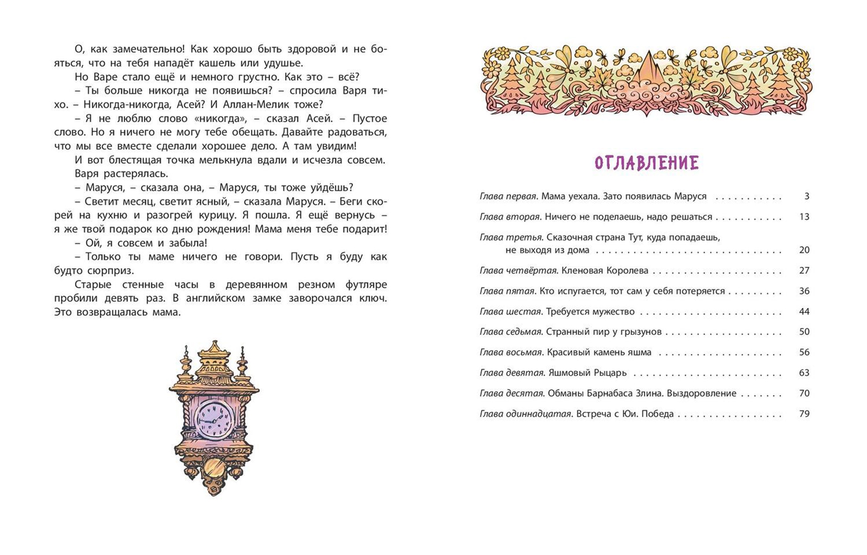ОписаниеКак-то раз девочка Варя осталась дома одна: папа улетел в командировку, а мама убежала на работу. Варе было грустно и немножко страшно. Но неожиданно подбодрить её пришла… плюшевая игрушка, медведица по имени Маруся. Оказывается, Маруся умеет разговаривать, потому что она родом из волшебной страны Тут. В этой стране стряслась большая беда, и спасти ее может только маленькая девочка! И тогда Варя решает вместе с Марусей отправиться в опасное путешествие…Для младшего школьного возраста.Как-то раз девочка Варя осталась дома одна: папа улетел в командировку, а мама убежала на работу. Варе было грустно и немножко страшно. Но неожиданно подбодрить её пришла… плюшевая игрушка, медведица по имени Маруся. Оказывается, Маруся умеет разговаривать, потому что она родом из волшебной страны Тут. В этой стране стряслась большая беда, и спасти ее может только маленькая девочка! И тогда Варя решает вместе с Марусей отправиться в опасное путешествие…Для младшего школьного возраста.
