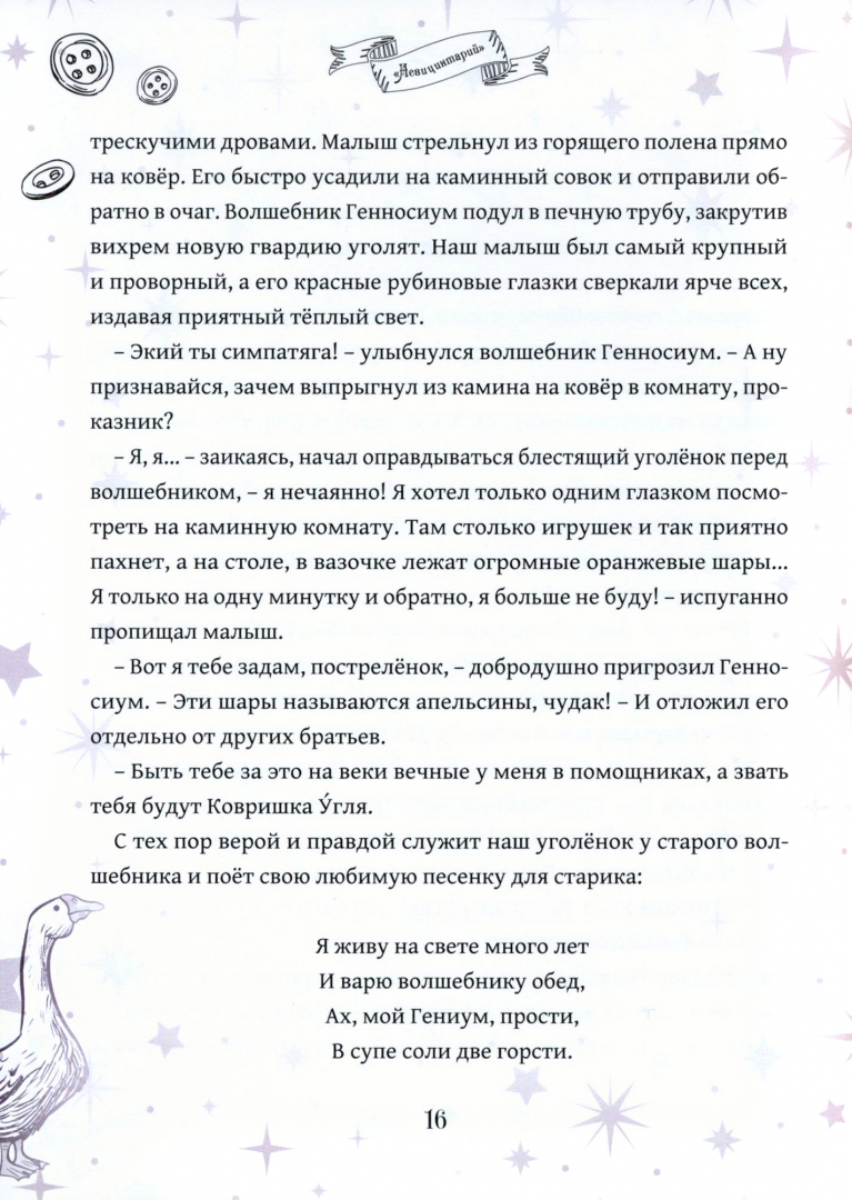 ОписаниеСаваж живёт в большом и шумном городе. Но он не грустит, ведь у него есть волшебная деревня! Там всё, как в сказке – высокие деревья, уютный дом, камин. Только не подумайте, что это какой-то простой камин. Это вход в страну Чердакрышию, где правит мудрый старый волшебник Генносиум. Все подданные этого королевства усердно работают, чтобы осенью сделать Саважу подарок. Ведь 14 сентября у него день рождения! В этом году мальчику исполняется пять лет – совсем взрослый! Жители Чердакрышии стараются изо всех сил, чтобы их друг был счастлив и снова приезжал в гости. Но, как в любой сказке, у нас тоже есть злодей – ведьма Лустегна задумала испортить все подарки, чтобы расстроить именинника. А потом и вовсе украсть у Генносиума волшебную книгу и посох, чтобы он и его помощники больше никогда и ничего не смогли сделать для мальчика! Неужто и вправду теперь празднику не бывать?Саваж живёт в большом и шумном городе. Но он не грустит, ведь у него есть волшебная деревня! Там всё, как в сказке – высокие деревья, уютный дом, камин. Только не подумайте, что это какой-то простой камин. Это вход в страну Чердакрышию, где правит мудрый старый волшебник Генносиум. Все подданные этого королевства усердно работают, чтобы осенью сделать Саважу подарок. Ведь 14 сентября у него день рождения! В этом году мальчику исполняется пять лет – совсем взрослый! Жители Чердакрышии стараются изо всех сил, чтобы их друг был счастлив и снова приезжал в гости. Но, как в любой сказке, у нас тоже есть злодей – ведьма Лустегна задумала испортить все подарки, чтобы расстроить именинника. А потом и вовсе украсть у Генносиума волшебную книгу и посох, чтобы он и его помощники больше никогда и ничего не смогли сделать для мальчика! Неужто и вправду теперь празднику не бывать?