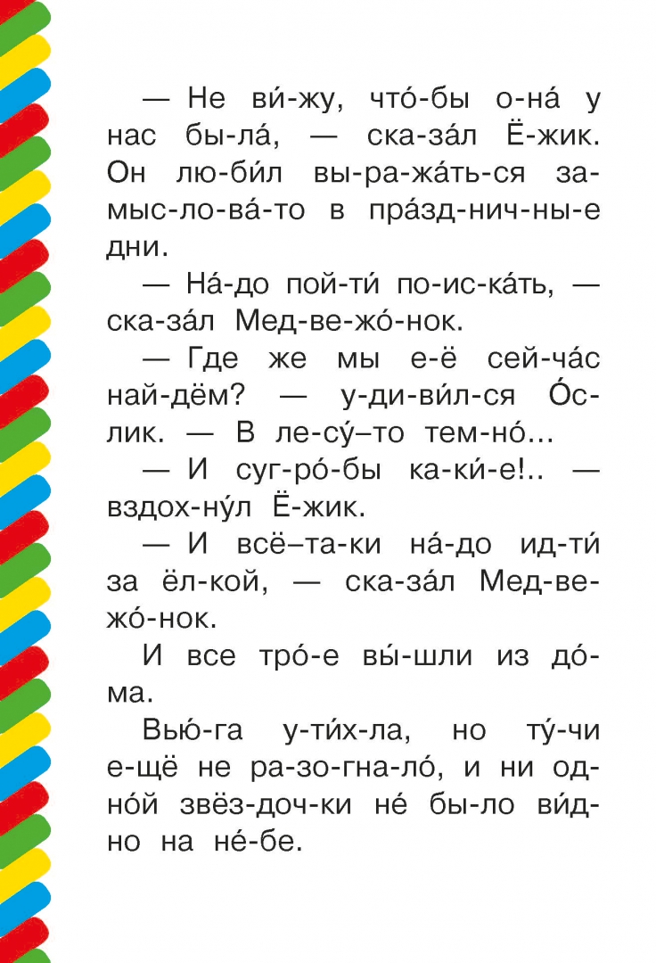 ОписаниеВаш малыш уже знает буквы и его ручки тянутся к книжкам? Покажите ему серию "Сам читаю по слогам". Это книжки небольшого формата, с большими буквами, и все слова разбиты на слоги с ударениями. В этой серии собраны лучшие произведения современных авторов и классиков детской литературы - С. Маршака, С. Михалкова, Э. Успенского, Г. Остера, В. Сутеева и других знаменитых писателей и поэтов. Каждую книгу маленькие мальчики и девочки смогут прочитать сами от начала и до конца. А потом будут гордо говорить: "Вот мои первые прочитанные книжки. Хочу читать ещё!". В этой книге малыши прочитают уютные и волшебные сказки Сергея Козлова "Как Ослик, Ёжик и Медвежонок встречали Новый год" и "Долгим зимним вечером".Для дошкольного возраста.Ваш малыш уже знает буквы и его ручки тянутся к книжкам? Покажите ему серию "Сам читаю по слогам". Это книжки небольшого формата, с большими буквами, и все слова разбиты на слоги с ударениями. В этой серии собраны лучшие произведения современных авторов и классиков детской литературы - С. Маршака, С. Михалкова, Э. Успенского, Г. Остера, В. Сутеева и других знаменитых писателей и поэтов. Каждую книгу маленькие мальчики и девочки смогут прочитать сами от начала и до конца. А потом будут гордо говорить: "Вот мои первые прочитанные книжки. Хочу читать ещё!". В этой книге малыши прочитают уютные и волшебные сказки Сергея Козлова "Как Ослик, Ёжик и Медвежонок встречали Новый год" и "Долгим зимним вечером".Для дошкольного возраста.