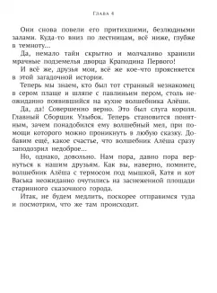 ОписаниеВ этой повести читатели встретятся со своими "старыми знакомыми" - волшебником Алёшей, Джинном, Васей Вертушинкиным, Катей и котом Васькой. На этот раз герои окажутся в волшебной стране, жители которой не могут улыбаться, так как у них украли улыбки. Эти улыбки по приказу короля Краподина Первого переплавляет в золотые колокольчики магистр Мираклюс. Но добро обязательно восторжествует, и нашим героям при помощи девочки Глазастика, юной Ниточки и ее жениха Трота, а также королевы Мышки удастся найти ключ-невидимку и спасти жителей королевства.Для младшего школьного возраста.По мотивам сказки снят мультфильм.Повесть "Глазастик и ключ-невидимка" продолжает серию произведений писательницы Софьи Прокофьевой. Ранее в данной серии вышли повести "Лоскутик и облако", "Ученик волшебника", "Остров капитанов", "Приключения жёлтого чемоданчика" и т. д.В этой повести читатели встретятся со своими "старыми знакомыми" - волшебником Алёшей, Джинном, Васей Вертушинкиным, Катей и котом Васькой. На этот раз герои окажутся в волшебной стране, жители которой не могут улыбаться, так как у них украли улыбки. Эти улыбки по приказу короля Краподина Первого переплавляет в золотые колокольчики магистр Мираклюс. Но добро обязательно восторжествует, и нашим героям при помощи девочки Глазастика, юной Ниточки и ее жениха Трота, а также королевы Мышки удастся найти ключ-невидимку и спасти жителей королевства.Для младшего школьного возраста.По мотивам сказки снят мультфильм.Повесть "Глазастик и ключ-невидимка" продолжает серию произведений писательницы Софьи Прокофьевой. Ранее в данной серии вышли повести "Лоскутик и облако", "Ученик волшебника", "Остров капитанов", "Приключения жёлтого чемоданчика" и т. д.