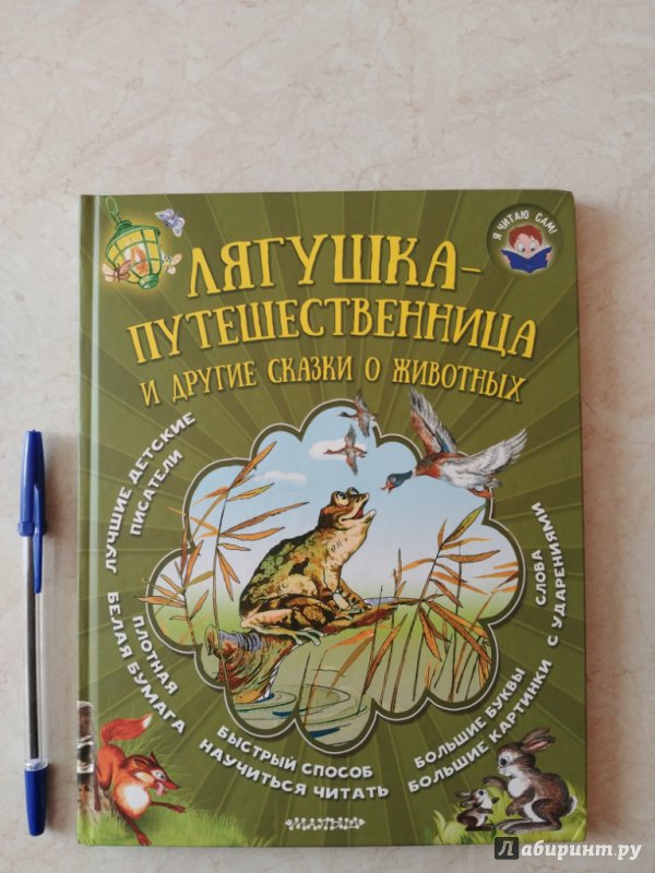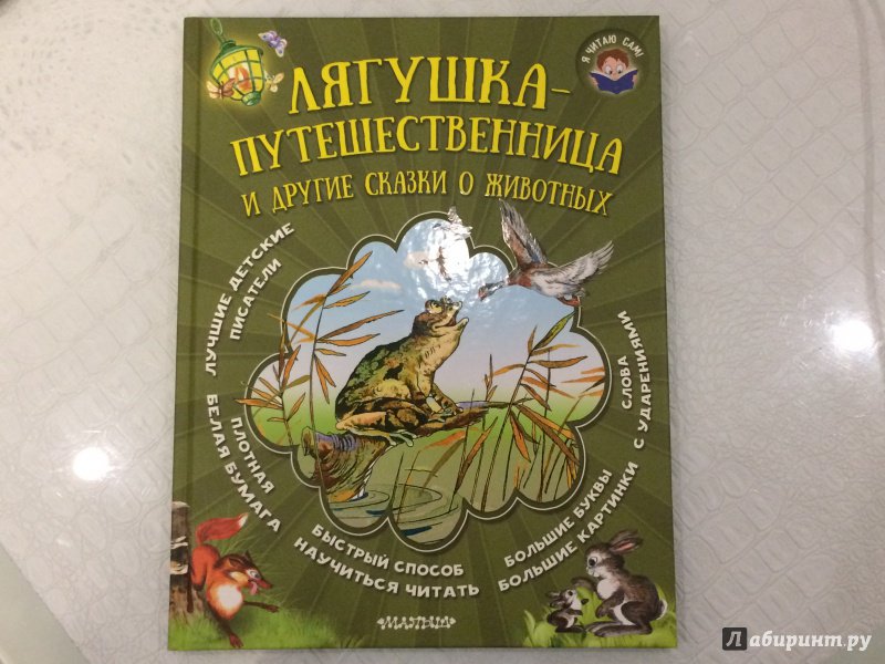 Описание"Лягушка-путешественница и другие сказки о животных" - это сборник сказок В. Бианки, В.М. Гаршина, Бориса Заходера и других знаменитых авторов. Из этой книги дети узнают, кто, кроме птиц, живёт в дупле, кто чем поёт, как можно путешествовать без крыльев и другие интересные подробности из жизни животных в дикой природе. Этот сборник отлично подходит для начинающих читателей, ведь здесь очень крупный шрифт и слова с ударениями, что поможет детям самостоятельно прочитать всю книжку целиком. Книги из серии "Я читаю сам!" незаменимы для тех, кто любит читать!Для детей дошкольного возраста."Лягушка-путешественница и другие сказки о животных" - это сборник сказок В. Бианки, В.М. Гаршина, Бориса Заходера и других знаменитых авторов. Из этой книги дети узнают, кто, кроме птиц, живёт в дупле, кто чем поёт, как можно путешествовать без крыльев и другие интересные подробности из жизни животных в дикой природе. Этот сборник отлично подходит для начинающих читателей, ведь здесь очень крупный шрифт и слова с ударениями, что поможет детям самостоятельно прочитать всю книжку целиком. Книги из серии "Я читаю сам!" незаменимы для тех, кто любит читать!Для детей дошкольного возраста.