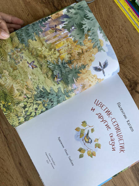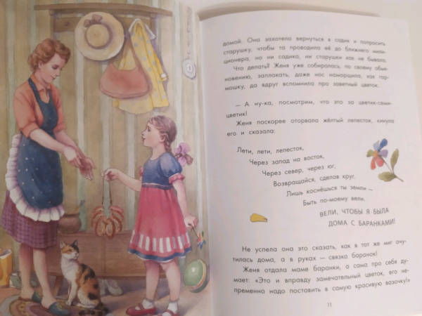 ОписаниеУ Валентина Катаева была удивительная способность находить общий язык с людьми разных возрастов. В своих книгах он обращался и к взрослым, и к подросткам, и к детям. В сказках он убедительно и просто разговаривал с младшими школьниками об очень непростых вещах: об ответственности, трудолюбии, дружбе. Говорилось в них и о семейных ценностях. Семья была очень важна для Валентина Катаева, ведь он лишился матери ещё совсем маленьким. И наверное, не случайно герои сказок названы именами его детей: все приключения в них происходят с Женей и её младшим братом Павликом.Если бы Женя не считала ворон, она бы заметила, что бродячая собака съела все её баранки. Теперь мама, папа и брат Павлик останутся без угощения, и слезами горю не помочь. Но тут Жене помогло волшебство: незнакомая старушка подарила ей цветик-семицветик - чудесный цветок, исполняющий желания. Только на хорошие ли дела потратила волшебную силу героиня "Цветика-семицветика"? Научиться отличать важное от второстепенного и принимать верные решения придётся и героям других сказок Катаева: "Дудочка и кувшинчик", "Грибы", "Пень", "Голубок". В этом им помогут сказочные существа, а ещё родители, которые всегда готовы понять и поддержать своих детей.Для детей младшего школьного возраста.СвернутьУ Валентина Катаева была удивительная способность находить общий язык с людьми разных возрастов. В своих книгах он обращался и к взрослым, и к подросткам, и к детям. В сказках он убедительно и просто разговаривал с младшими школьниками об очень непростых вещах: об ответственности, трудолюбии, дружбе. Говорилось в них и о семейных ценностях. Семья была очень важна для Валентина Катаева, ведь он лишился матери ещё совсем маленьким. И наверное, не случайно герои сказок названы именами его детей: все приключения в них происходят с Женей и её младшим братом Павликом.Если бы Женя не считала ворон, она бы заметила, что бродячая собака съела все её баранки. Теперь мама, папа и брат Павлик останутся без угощения, и слезами горю не помочь. Но тут Жене помогло волшебство: незнакомая старушка подарила ей цветик-семицветик - чудесный цветок, исполняющий желания. Только на хорошие ли дела потратила волшебную силу героиня "Цветика-семицветика"? Научиться отличать важное от второстепенного и принимать верные решения придётся и героям других сказок Катаева: "Дудочка и кувшинчик", "Грибы", "Пень", "Голубок". В этом им помогут сказочные существа, а ещё родители, которые всегда готовы понять и поддержать своих детей.Для детей младшего школьного возраста.СвернутьСвернуть