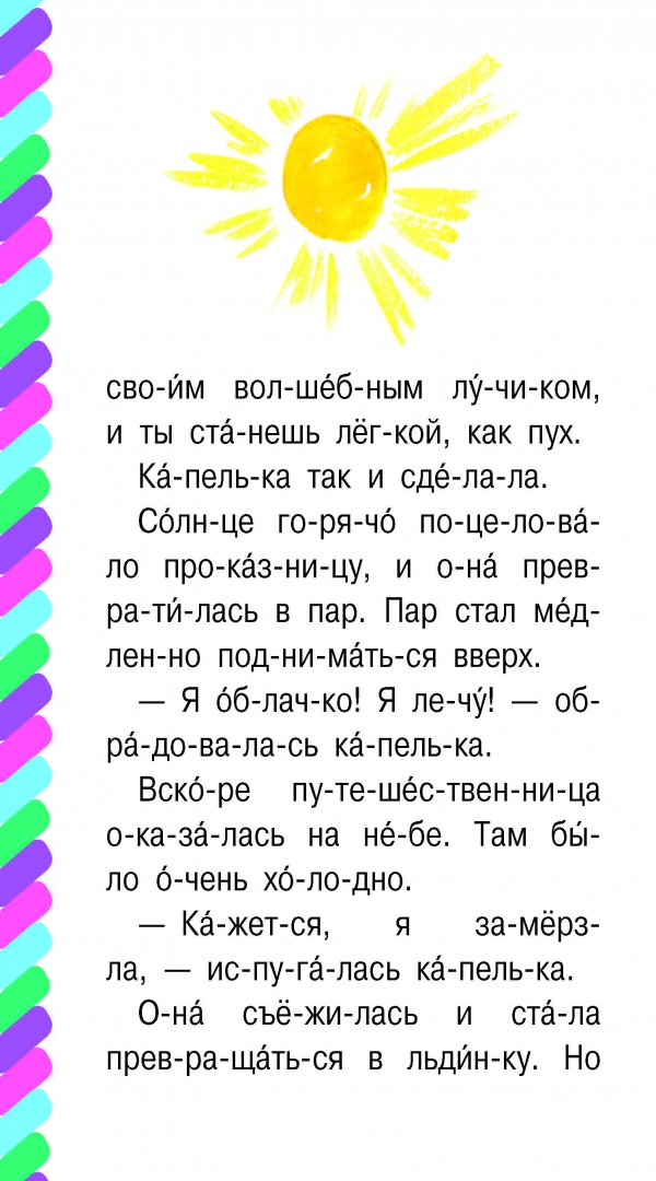 ОписаниеВаш малыш уже знает буквы и его ручки тянутся к книжкам? Покажите ему серию "Сам читаю по слогам". Это книжки небольшого формата, с большими буквами, и все слова разбиты на слоги с ударениями. В этой серии собраны лучшие произведения классиков детской литературы — С. Маршака, С. Михалкова, Э. Успенского, Г. Остера, В. Сутеева и других знаменитых писателей и поэтов. Каждую книгу маленькие мальчики и девочки смогут прочитать САМИ от начала и до конца. А потом будут гордо говорить: "Вот мои первые прочитанные книжки. Хочу читать ещё!" В познавательных сказках Наталии Немцовой, кандидата педагогических наук, сценариста радио и телевидения, малыши получат простые и запоминающиеся ответы на вопросы: почему идёт дождь? зачем киту фонтан? что такое северное сияние?Для дошкольного возраста.Ваш малыш уже знает буквы и его ручки тянутся к книжкам? Покажите ему серию "Сам читаю по слогам". Это книжки небольшого формата, с большими буквами, и все слова разбиты на слоги с ударениями. В этой серии собраны лучшие произведения классиков детской литературы — С. Маршака, С. Михалкова, Э. Успенского, Г. Остера, В. Сутеева и других знаменитых писателей и поэтов. Каждую книгу маленькие мальчики и девочки смогут прочитать САМИ от начала и до конца. А потом будут гордо говорить: "Вот мои первые прочитанные книжки. Хочу читать ещё!" В познавательных сказках Наталии Немцовой, кандидата педагогических наук, сценариста радио и телевидения, малыши получат простые и запоминающиеся ответы на вопросы: почему идёт дождь? зачем киту фонтан? что такое северное сияние?Для дошкольного возраста.