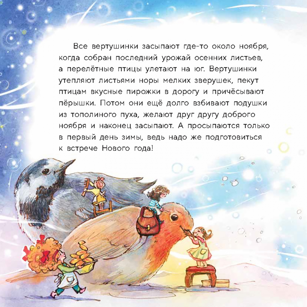 ОписаниеВертушинки - крошечные, чуть больше горошинки, лесные духи. Не путайте их с феями: у них нет крылышек. Да и волшебство их довольно будничное: вышивать цветущие луга, запускать кораблики в плавание, рисовать морозные узоры на окнах... Вертушинки селятся рядом с небольшой речкой, а в ноябре впадают в спячку, чтобы проснуться с первым снегом. С самыми внимательными и терпеливыми читателями они обещают поделиться своим главным секретом.Тамара Михеева - настоящий классик детской литературы и проводник в мир самых удивительных существ. Её перу принадлежат более двух десятков книг, она финалист премии им. В. П. Крапивина, лауреат Национальной премии "Заветная мечта" и литературной премии им. С. В. Михалкова. В издательстве "Пять четвертей" также вышла её детективная повесть "Тайник в доме художника". Волшебство мира вертушинок воплощено в иллюстрациях Ольги Брезинской.Для чтения взрослыми детям.Вертушинки - крошечные, чуть больше горошинки, лесные духи. Не путайте их с феями: у них нет крылышек. Да и волшебство их довольно будничное: вышивать цветущие луга, запускать кораблики в плавание, рисовать морозные узоры на окнах... Вертушинки селятся рядом с небольшой речкой, а в ноябре впадают в спячку, чтобы проснуться с первым снегом. С самыми внимательными и терпеливыми читателями они обещают поделиться своим главным секретом.Тамара Михеева - настоящий классик детской литературы и проводник в мир самых удивительных существ. Её перу принадлежат более двух десятков книг, она финалист премии им. В. П. Крапивина, лауреат Национальной премии "Заветная мечта" и литературной премии им. С. В. Михалкова. В издательстве "Пять четвертей" также вышла её детективная повесть "Тайник в доме художника". Волшебство мира вертушинок воплощено в иллюстрациях Ольги Брезинской.Для чтения взрослыми детям.