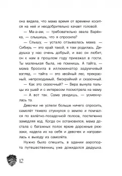 ОписаниеТайга скрывает в себе немало неизвестного. И уж точно много сказочного. Конечно, сестрёнки Вера и Варя, отправляясь на летние каникулы к дедушке в Сибирь, об этом не догадываются. Им кажется, что всё совсем наоборот. Для городских девчонок лес - это скучно, а может быть, и жутко. Если даже во дворе дедушкиного дома не спрятаться от пауков и муравьёв, какие чудовища поджидают их в лесной чаще?! Но сказка приходит в жизнь сестёр без предупреждения и долгого зачина. Внезапно просыпается Леший, Вера и Варя отправляются на поиски его волшебного посоха, а в конце пути находят разгадку семейной тайны…Екатерина Шелеметьева родилась и выросла в Сибири, окончила факультет журналистики Томского государственного университета. А значит, с тайгой она знакома не понаслышке. Книгу проиллюстрировала замечательная художница Анна Сладкова.Для младшего и среднего школьного возраста.Тайга скрывает в себе немало неизвестного. И уж точно много сказочного. Конечно, сестрёнки Вера и Варя, отправляясь на летние каникулы к дедушке в Сибирь, об этом не догадываются. Им кажется, что всё совсем наоборот. Для городских девчонок лес - это скучно, а может быть, и жутко. Если даже во дворе дедушкиного дома не спрятаться от пауков и муравьёв, какие чудовища поджидают их в лесной чаще?! Но сказка приходит в жизнь сестёр без предупреждения и долгого зачина. Внезапно просыпается Леший, Вера и Варя отправляются на поиски его волшебного посоха, а в конце пути находят разгадку семейной тайны…Екатерина Шелеметьева родилась и выросла в Сибири, окончила факультет журналистики Томского государственного университета. А значит, с тайгой она знакома не понаслышке. Книгу проиллюстрировала замечательная художница Анна Сладкова.Для младшего и среднего школьного возраста.