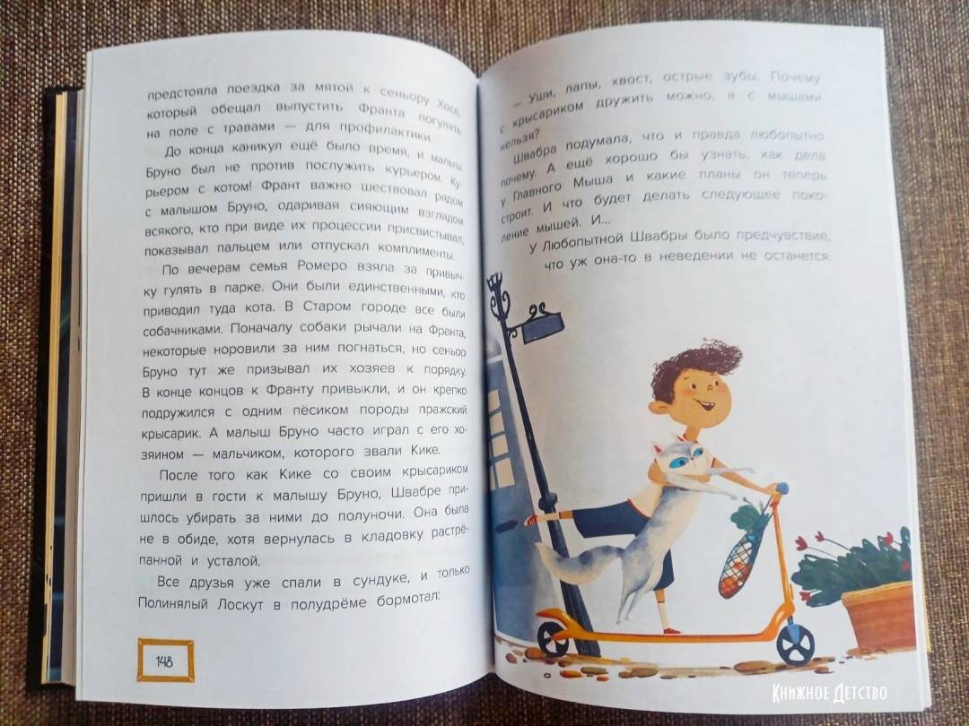 ОписаниеИногда великолепная пятёрка выглядит так: Любопытная Швабра, Засаленный Тапок, Карандашный Огрызок, Беззубая Вилка и Полинялый Лоскут. Вот с кем живёт бок о бок малыш Бруно, сын хозяина деликатесной лавки.Невиданное дело: в их тихом городке ограблен банк, мало того - все следы ведут в лавку отца. Только тсс - никому не говорите! - кажется, в этом замешаны мыши. Без кота не обойтись! И как хорошо, что Любопытная Швабра знает одного приличного зверя, способного им помочь и спасти лавку деликатесов от скандала и разорения…Ольга Сафронова - журналист по образованию, переводчик и писатель. Её книги издаются на русском и испанском языках. Несколько лет назад Ольга переехала в Барселону и вскоре обнаружила, что незаметно для себя уже сочиняет сказки. Ещё больше испанского колорита образам придала Дарья Мальцева - именно она точно знает, как выглядит самая любопытная в мире швабра.Для младшего и среднего школьного возраста.Иногда великолепная пятёрка выглядит так: Любопытная Швабра, Засаленный Тапок, Карандашный Огрызок, Беззубая Вилка и Полинялый Лоскут. Вот с кем живёт бок о бок малыш Бруно, сын хозяина деликатесной лавки.Невиданное дело: в их тихом городке ограблен банк, мало того - все следы ведут в лавку отца. Только тсс - никому не говорите! - кажется, в этом замешаны мыши. Без кота не обойтись! И как хорошо, что Любопытная Швабра знает одного приличного зверя, способного им помочь и спасти лавку деликатесов от скандала и разорения…Ольга Сафронова - журналист по образованию, переводчик и писатель. Её книги издаются на русском и испанском языках. Несколько лет назад Ольга переехала в Барселону и вскоре обнаружила, что незаметно для себя уже сочиняет сказки. Ещё больше испанского колорита образам придала Дарья Мальцева - именно она точно знает, как выглядит самая любопытная в мире швабра.Для младшего и среднего школьного возраста.