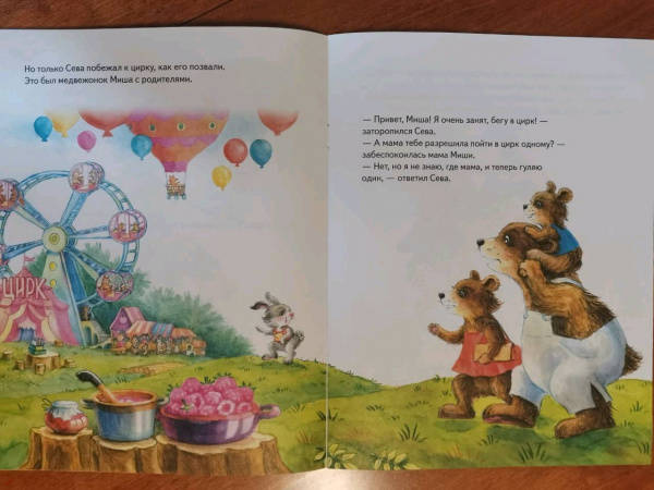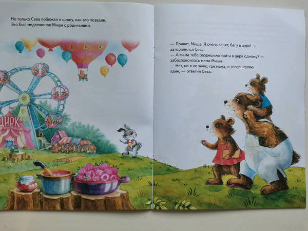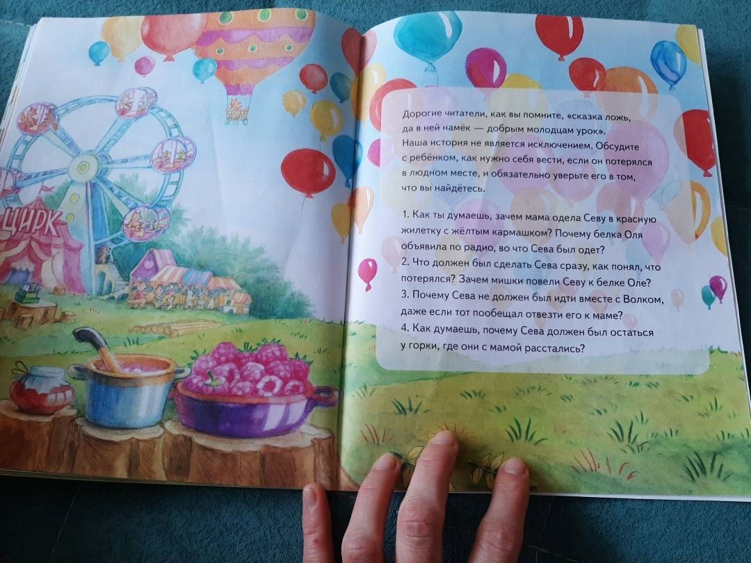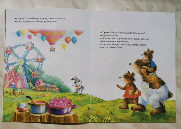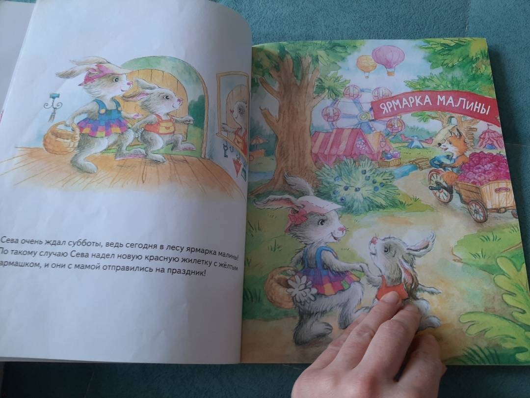 ОписаниеСегодня в лесу - ярмарка малины! Мама попросила Севу подождать её у горки, но Сева не услышал... А что случилось дальше, вы узнаете из сказки, поучительной и полезной. Это не просто великолепно иллюстрированные истории про непоседливого зайку и его друзей для семейного чтения, но и материал для беседы, "что такое хорошо и что такое плохо". В конце книги предлагаются вопросы, составленные детским педагогом-психологом для обсуждения с ребёнком. Книга рекомендована родителям, воспитателям, педагогам. Полезные сказки воспитывают ребёнка без крика и наказаний!Для чтения взрослыми детям.Сегодня в лесу - ярмарка малины! Мама попросила Севу подождать её у горки, но Сева не услышал... А что случилось дальше, вы узнаете из сказки, поучительной и полезной. Это не просто великолепно иллюстрированные истории про непоседливого зайку и его друзей для семейного чтения, но и материал для беседы, "что такое хорошо и что такое плохо". В конце книги предлагаются вопросы, составленные детским педагогом-психологом для обсуждения с ребёнком. Книга рекомендована родителям, воспитателям, педагогам. Полезные сказки воспитывают ребёнка без крика и наказаний!Для чтения взрослыми детям.