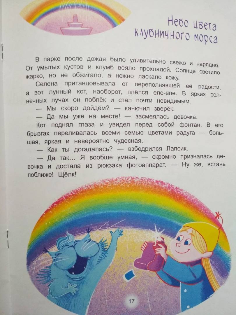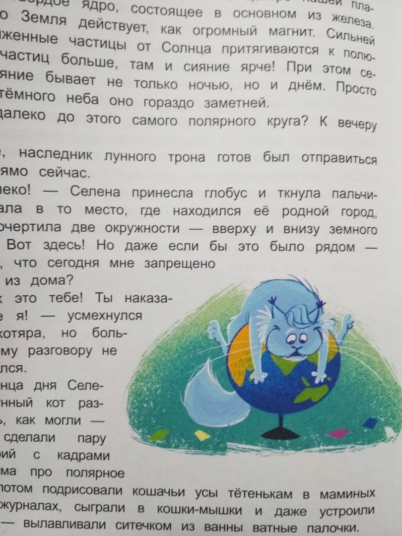 ОписаниеМожно читать про чудеса, а можно научиться видеть их вокруг себя — в солнечном закате, голубом небе, радуге после дождя. И обязательно загадывать желание на падающую звезду! Как делает это девочка с необычным именем Селена. А ещё она дружит с лунным котом, который спустился к ней однажды по серебристой лунной дорожке. Вместе они отправляются на поиски семи чудес света, а точнее, световых явлений. Далеко ли они уйдут? Смогут ли разгадать тайну грозовых молний и полярного сияния? И станет ли лунный кот королём Обратной стороны Луны? Наука и волшебство — в одной книге!Книга адресована детям от 5 лет.Можно читать про чудеса, а можно научиться видеть их вокруг себя — в солнечном закате, голубом небе, радуге после дождя. И обязательно загадывать желание на падающую звезду! Как делает это девочка с необычным именем Селена. А ещё она дружит с лунным котом, который спустился к ней однажды по серебристой лунной дорожке. Вместе они отправляются на поиски семи чудес света, а точнее, световых явлений. Далеко ли они уйдут? Смогут ли разгадать тайну грозовых молний и полярного сияния? И станет ли лунный кот королём Обратной стороны Луны? Наука и волшебство — в одной книге!Книга адресована детям от 5 лет.